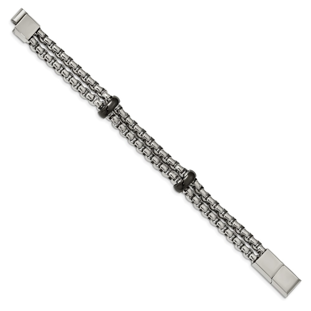 Stainless Steel Polished Black IP-plated 8in w/.5in ext. Bracelet