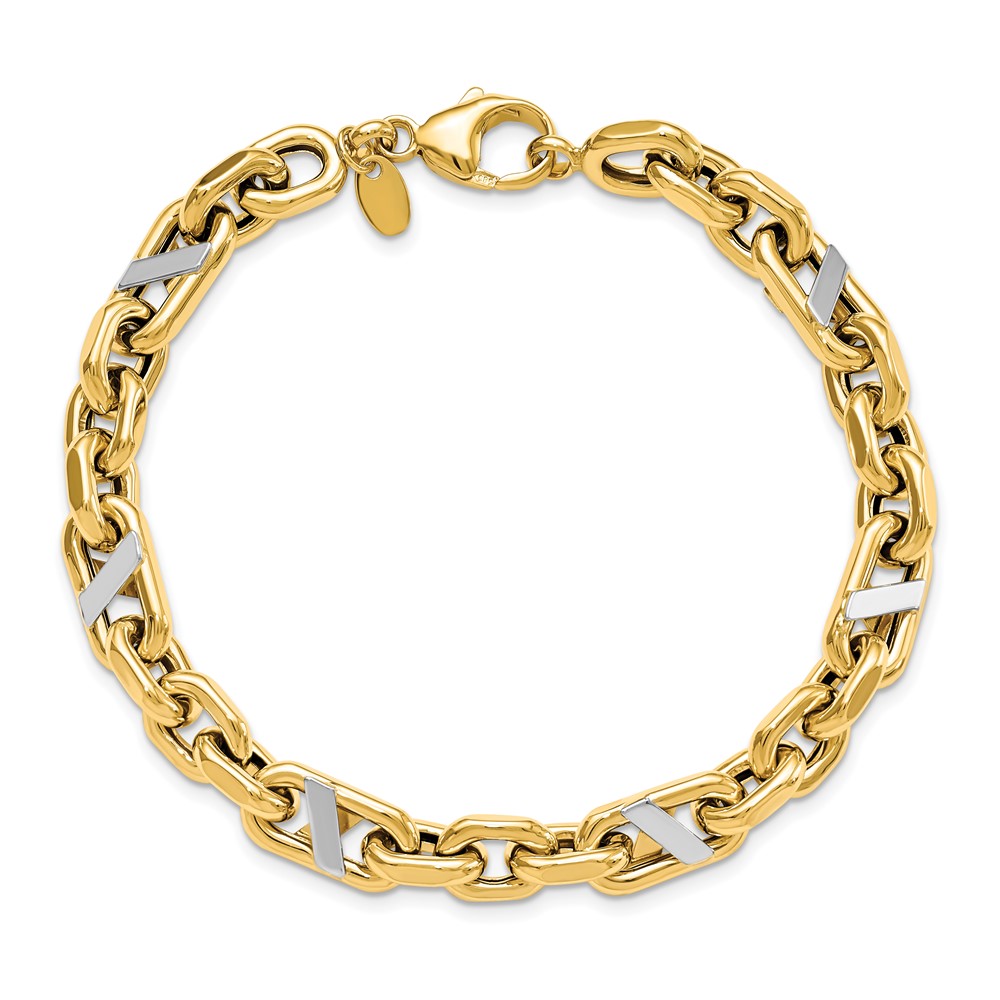 Leslie's 14k Men's Polished Rhodium Anchor Bracelet