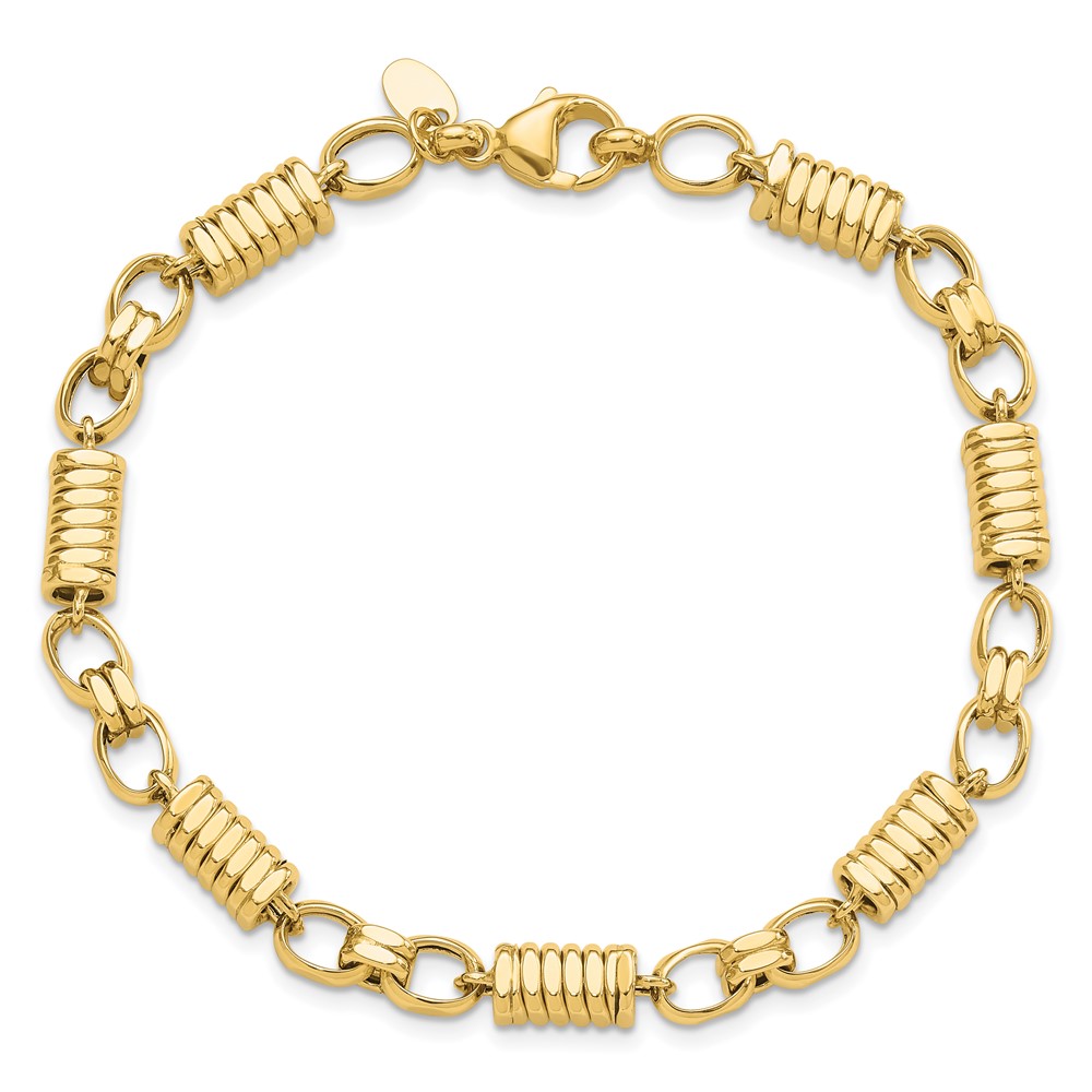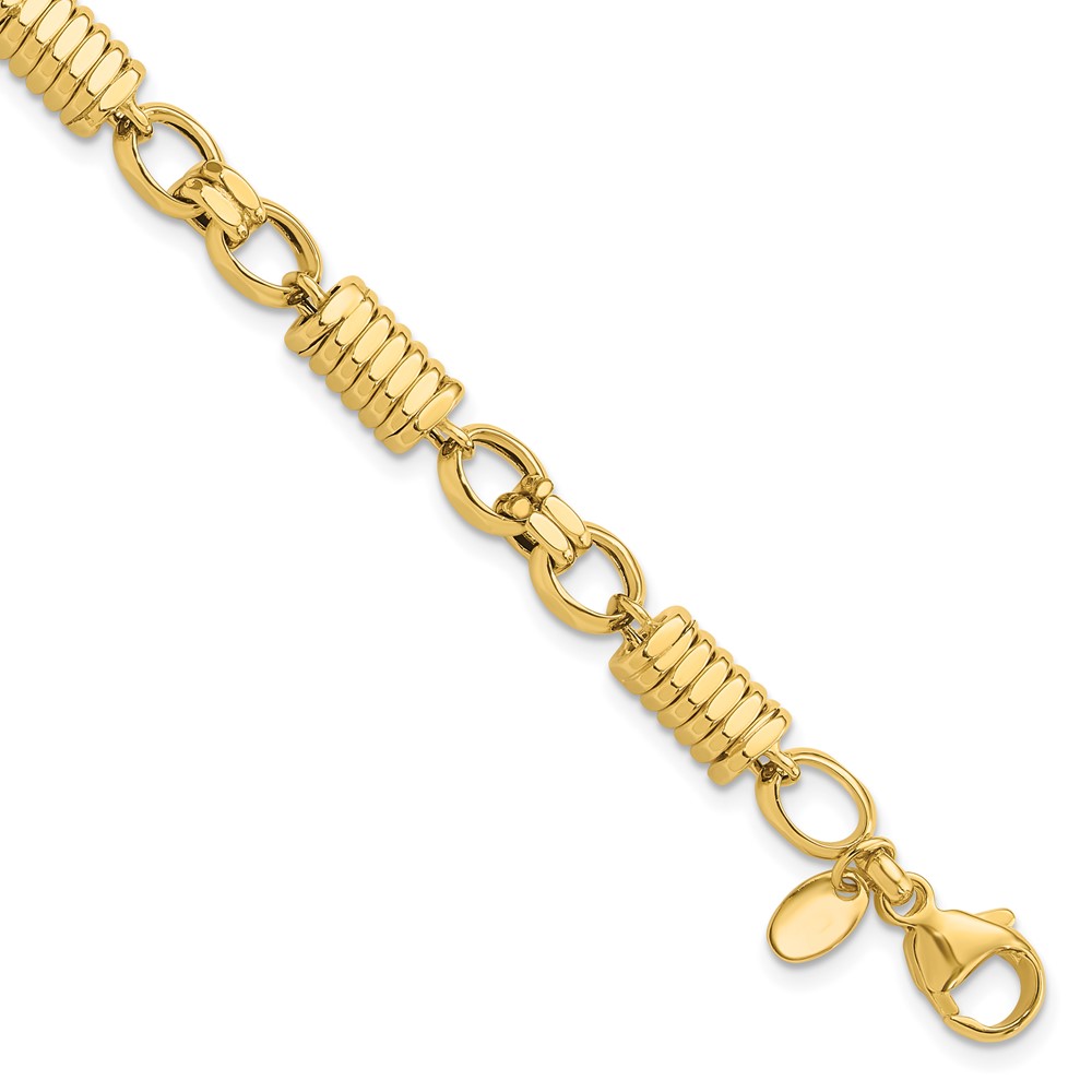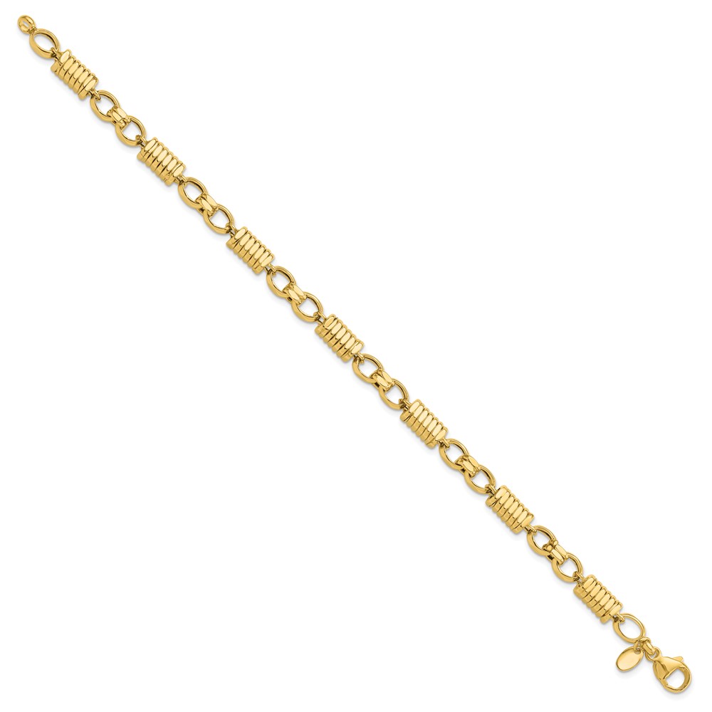 14k Polished and Grooved 5.4mm Fancy Link 8.5 inch Mens Bracelet