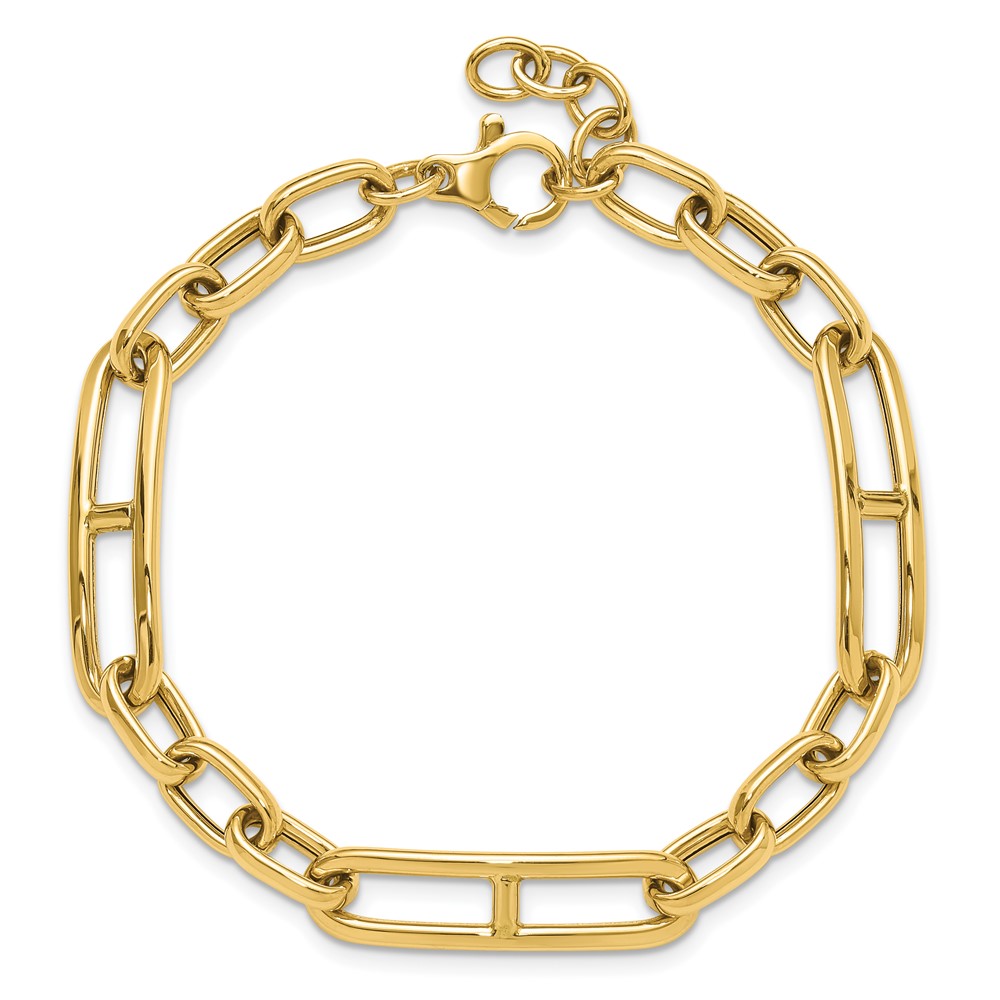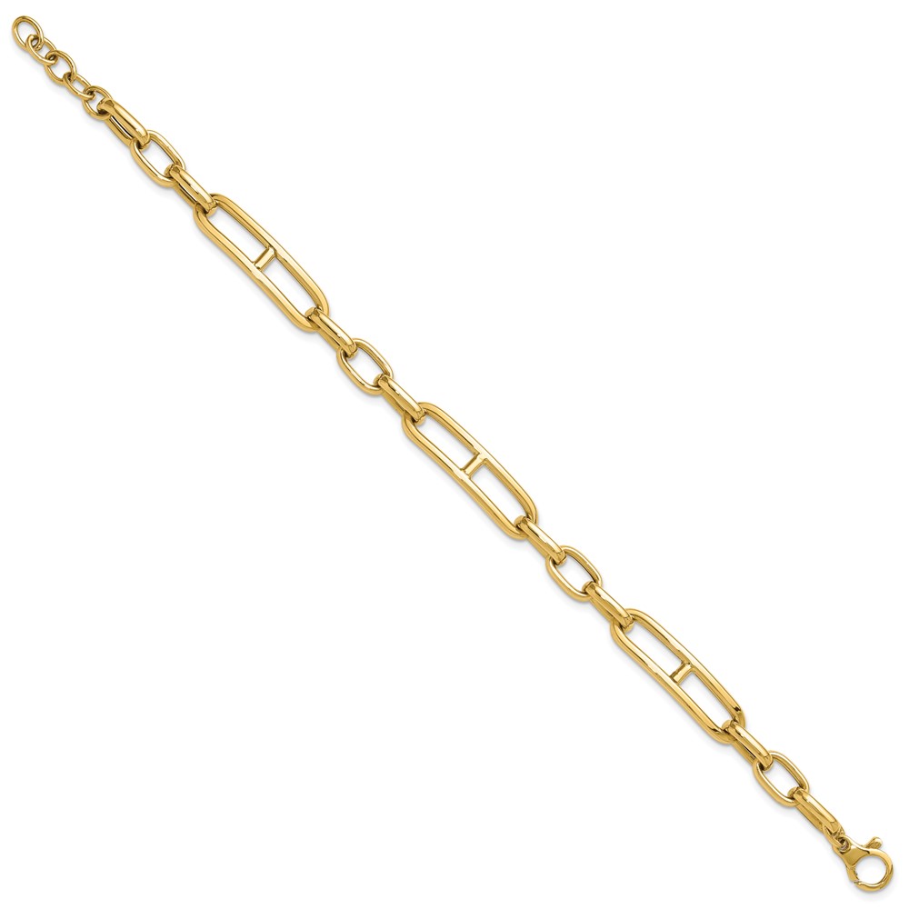 14K Polished 7.4mm Fancy Open Link Cable 8 inch Bracelet