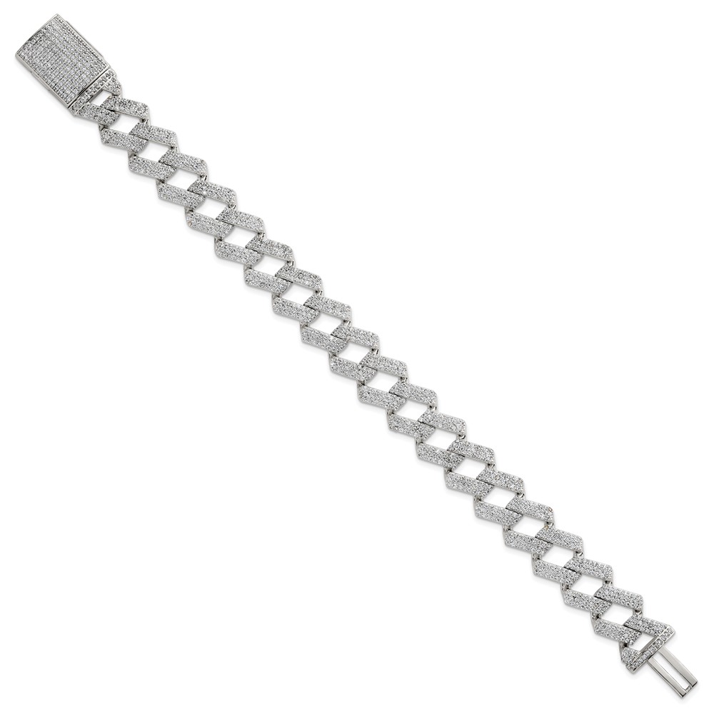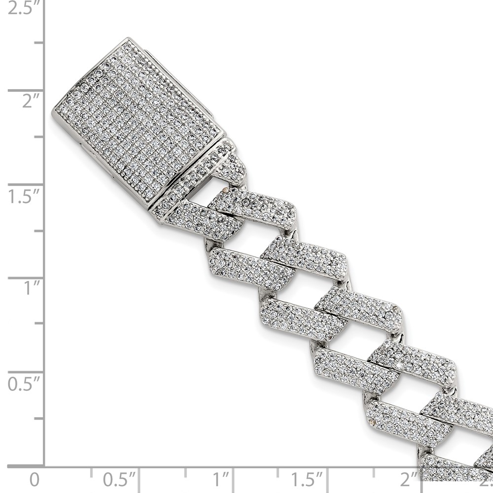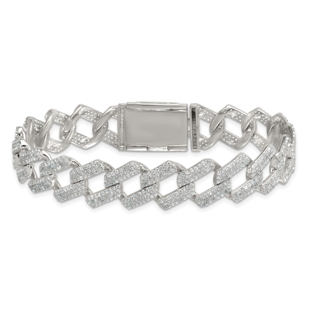 Sterling Silver Polished Fancy CZ Curb Link 8.5 Inch Mens Bracelet