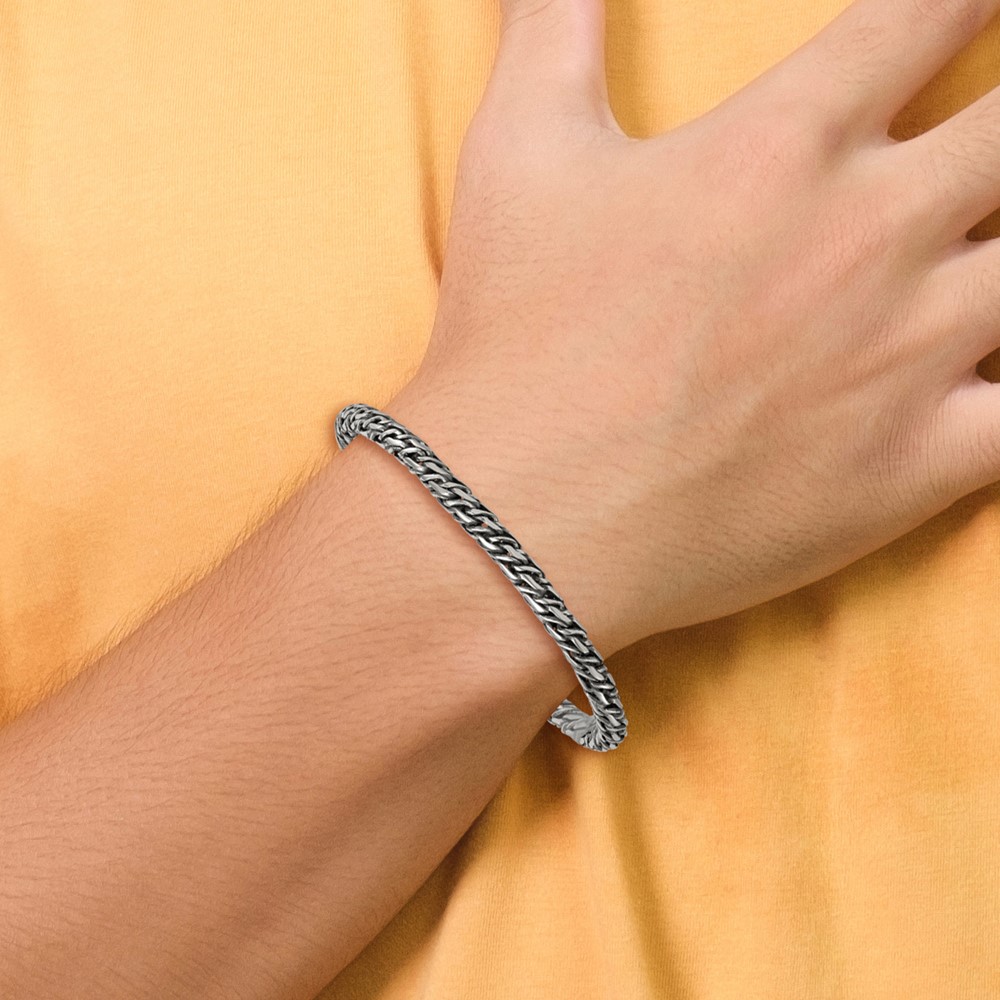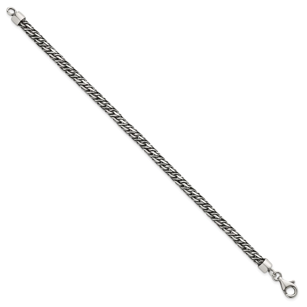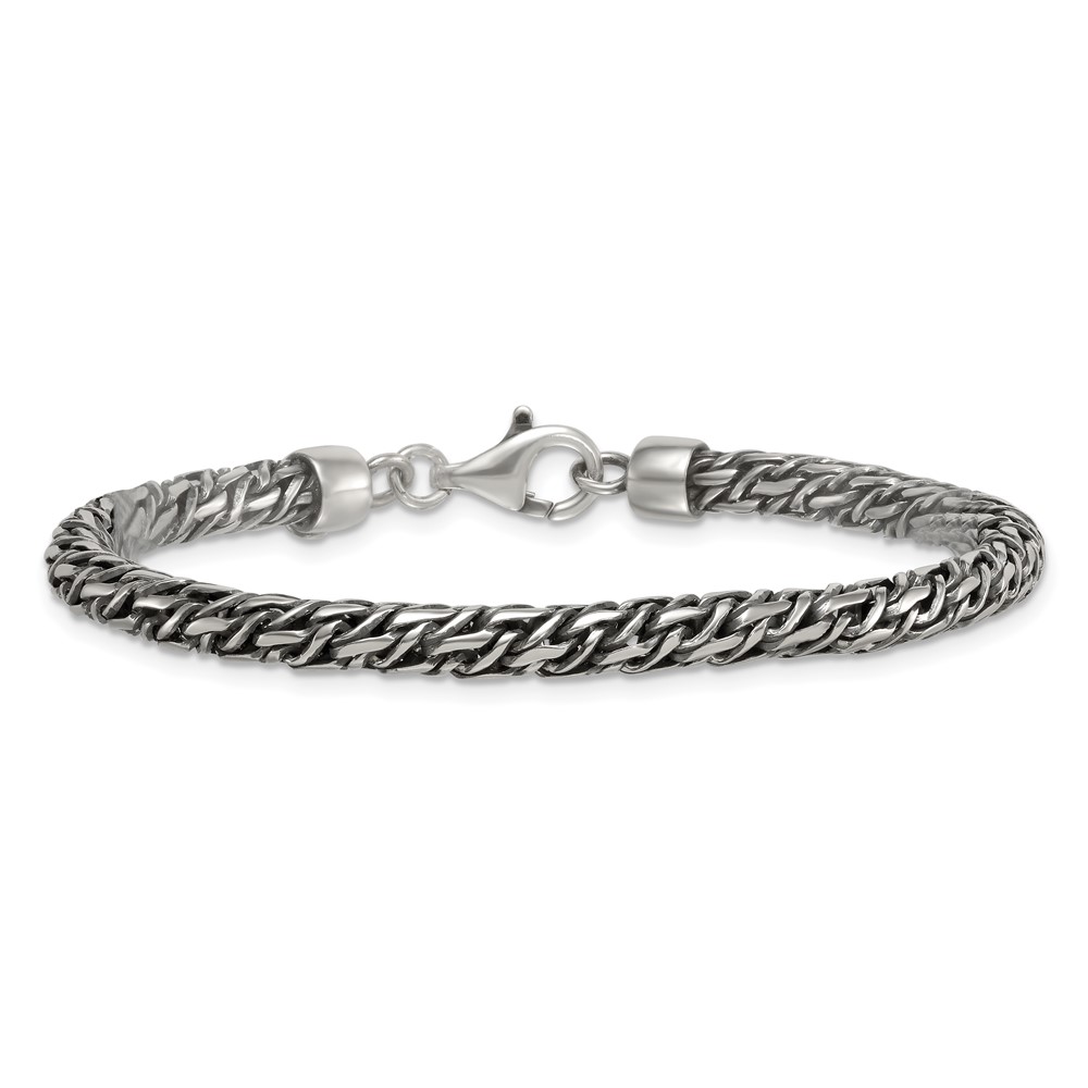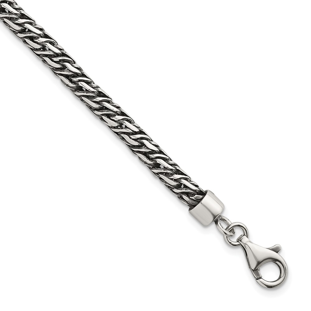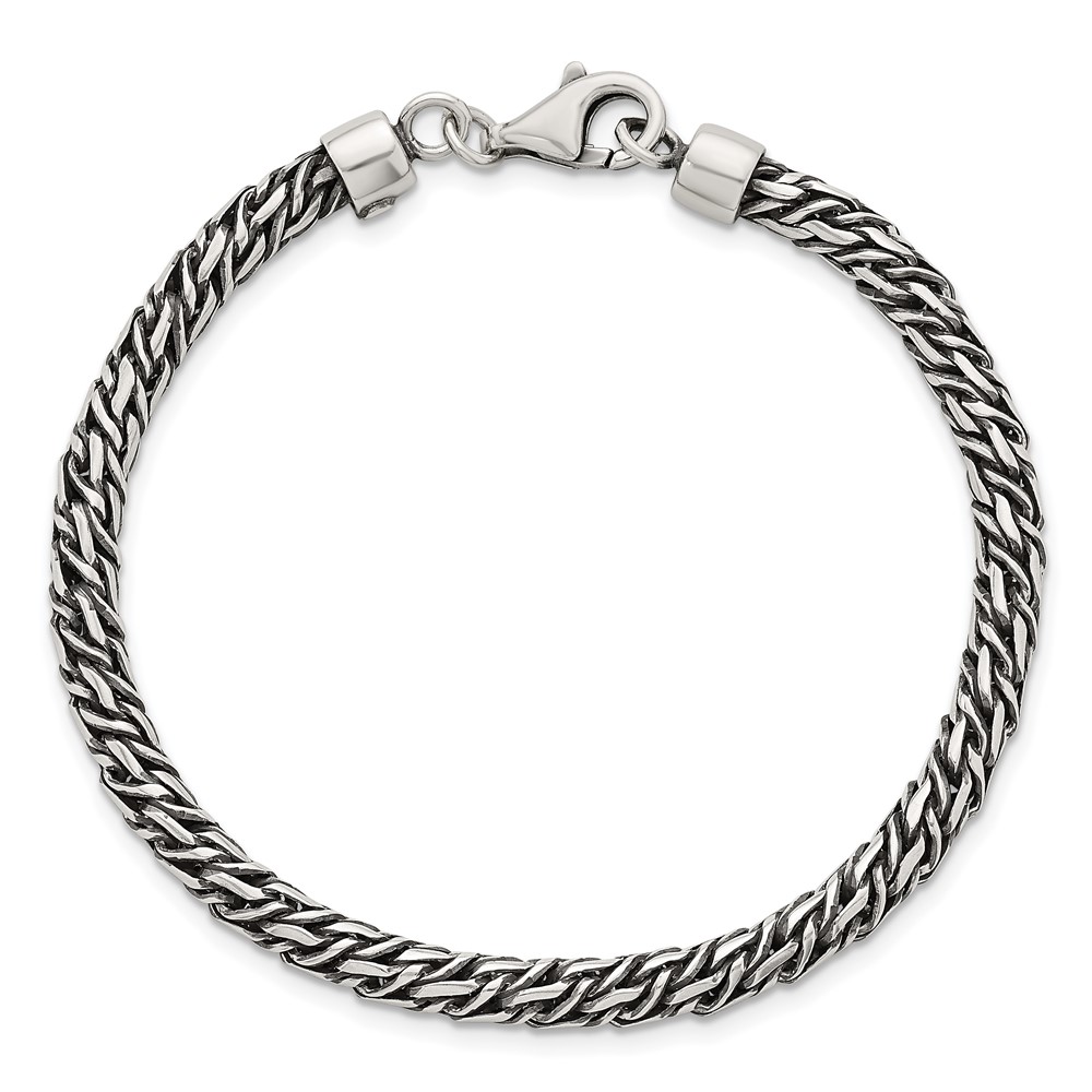 Sterling Silver Rhodium-plated Polished and Antiqued 4.8mm Fancy Link 8 Inch Bracelet