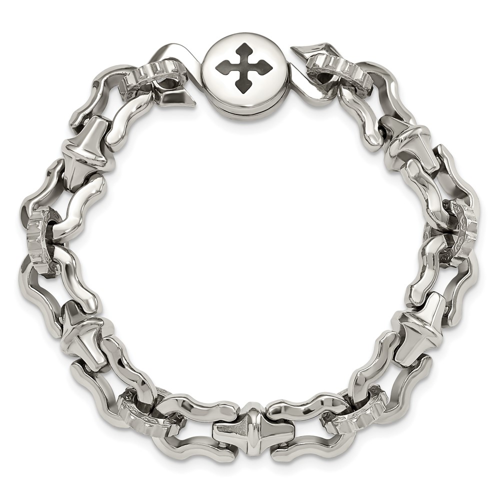 Stainless Steel Polished with Black Rubber Cross 8.5in Bracelet
