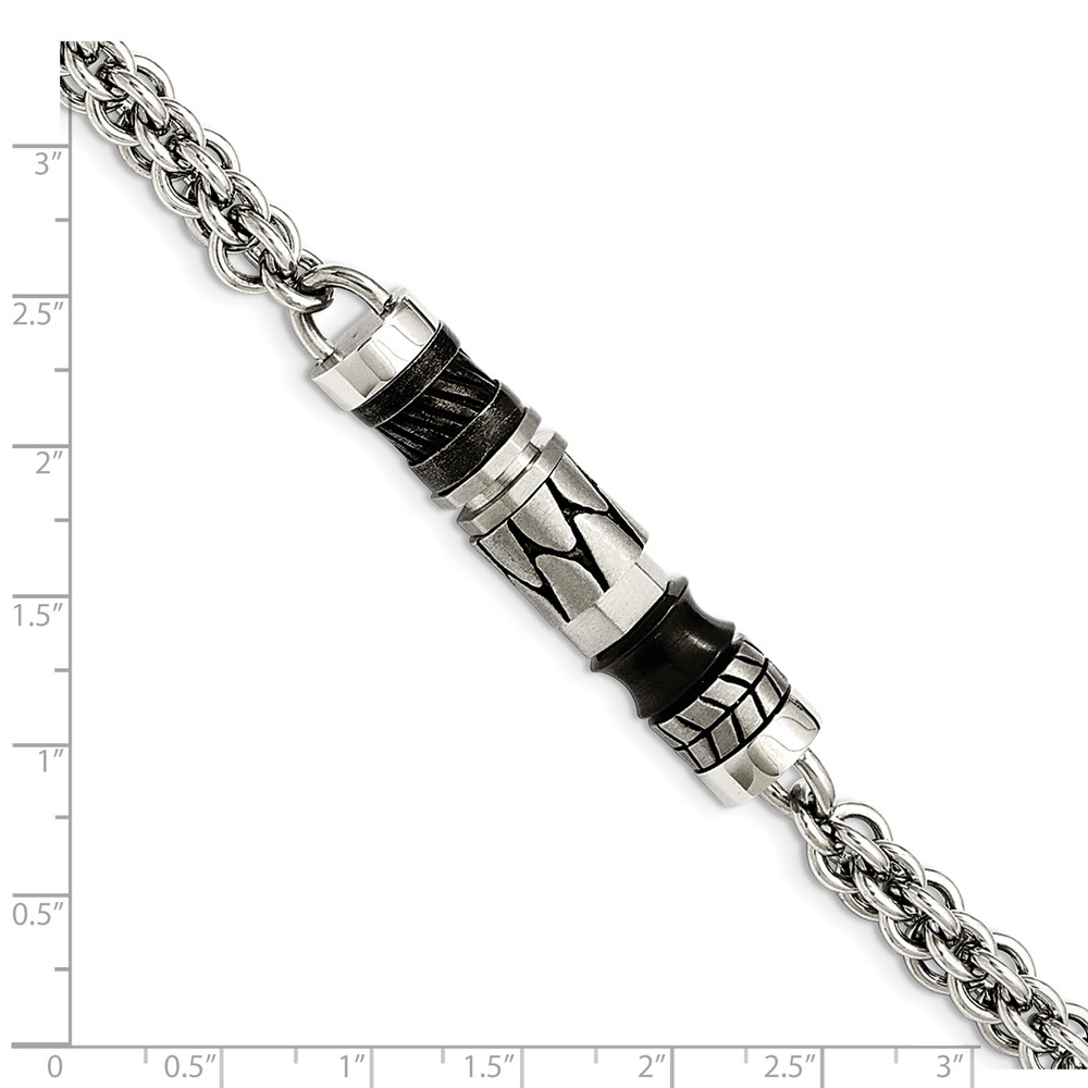 Stainless Steel Antiqued Brushed & Polished with Beads 8.25in Bracelet