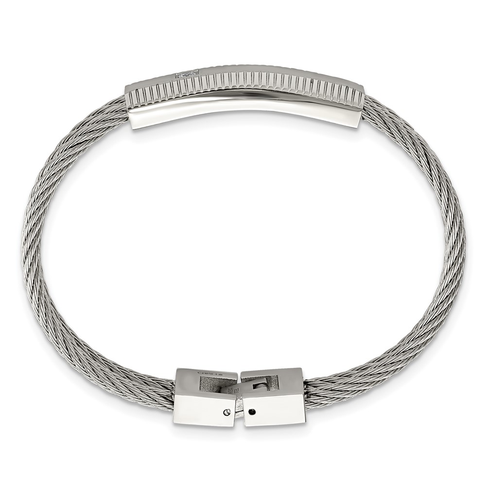 Stainless Steel Polished and Brushed CZ Wire 7in Bracelet
