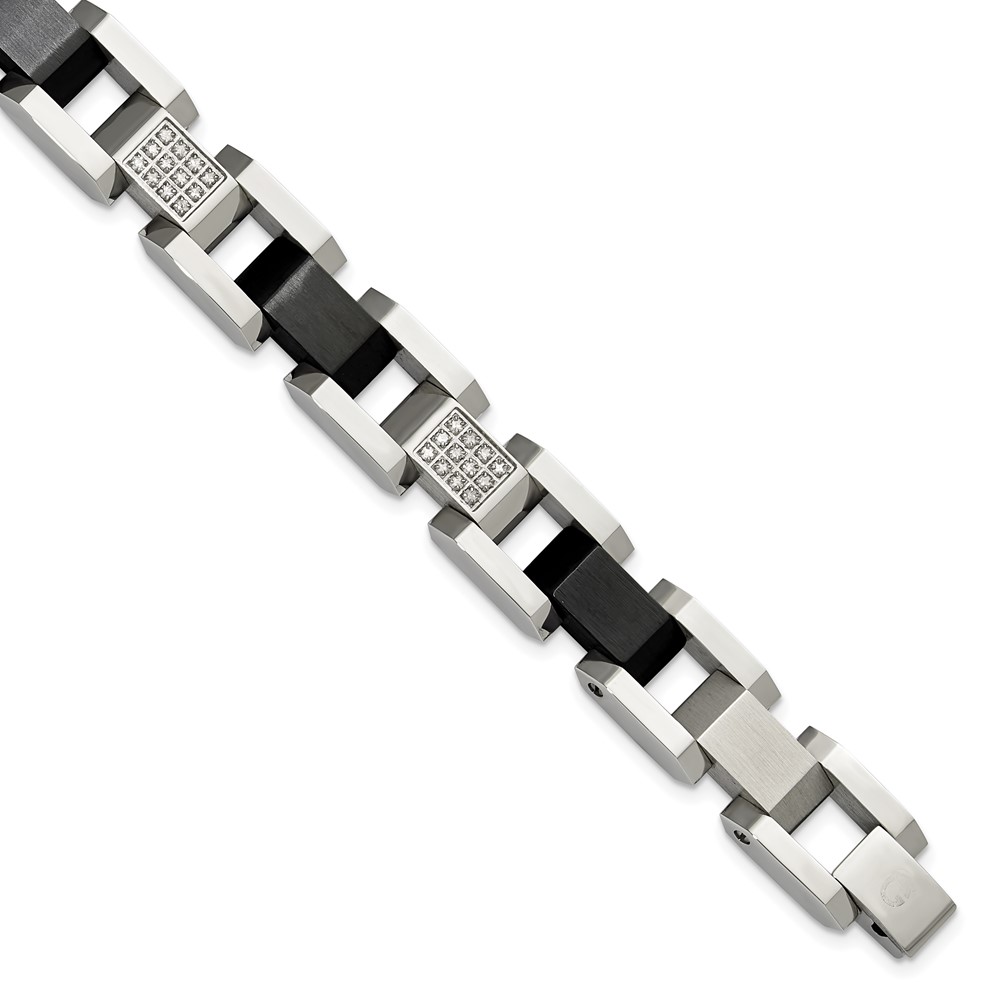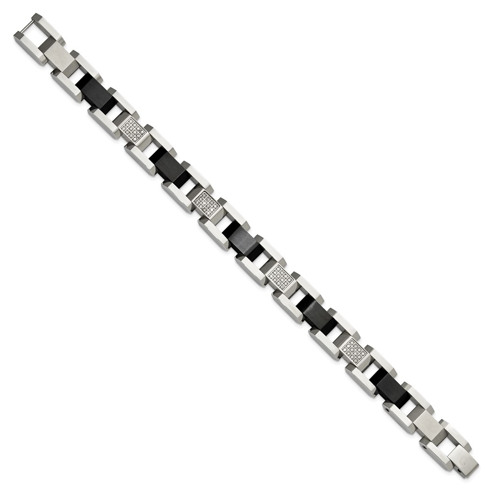 Steel Black Ion Plated Bracelet With White Diamond Links