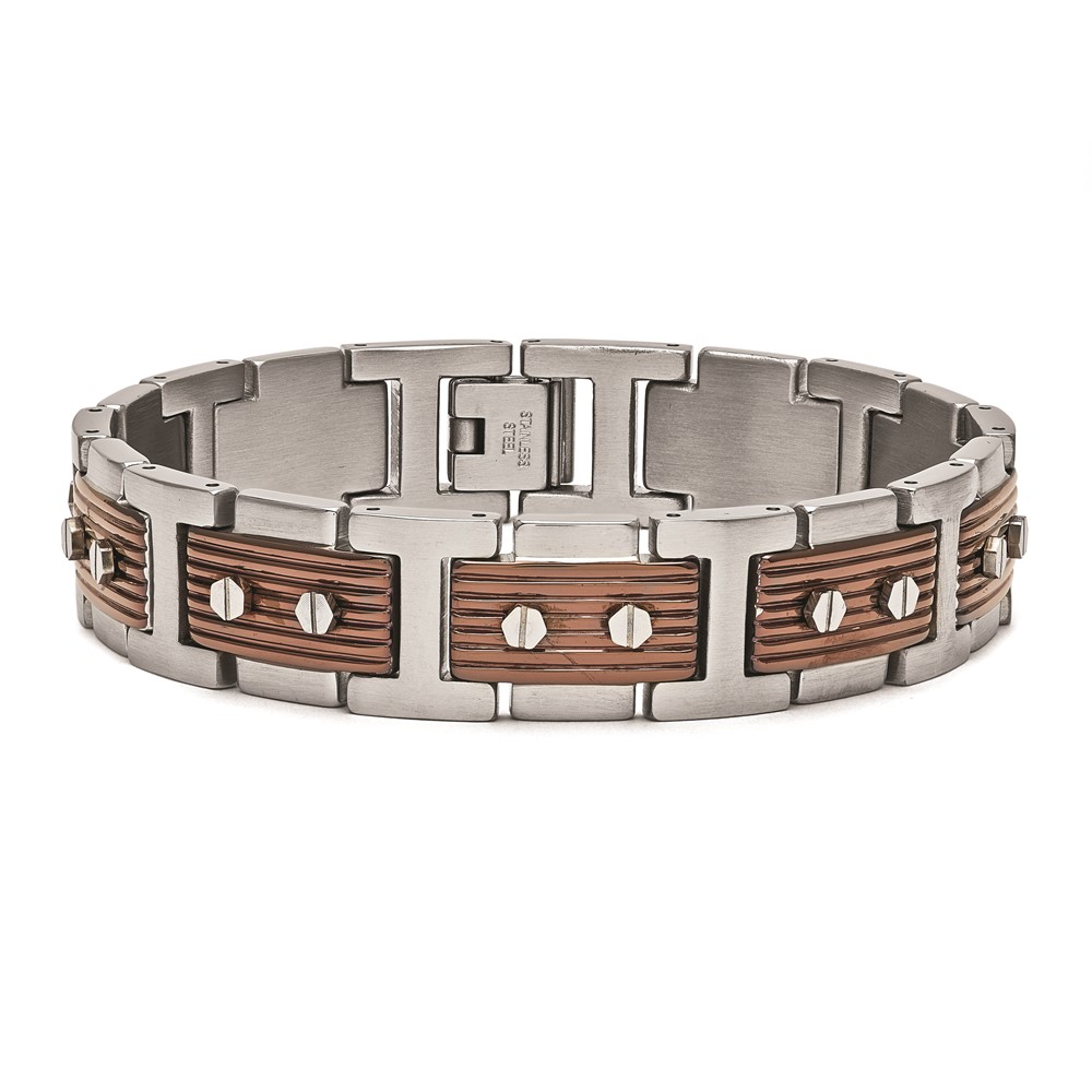 Stainless Steel Two Tone Nail Head Gents Bracelet