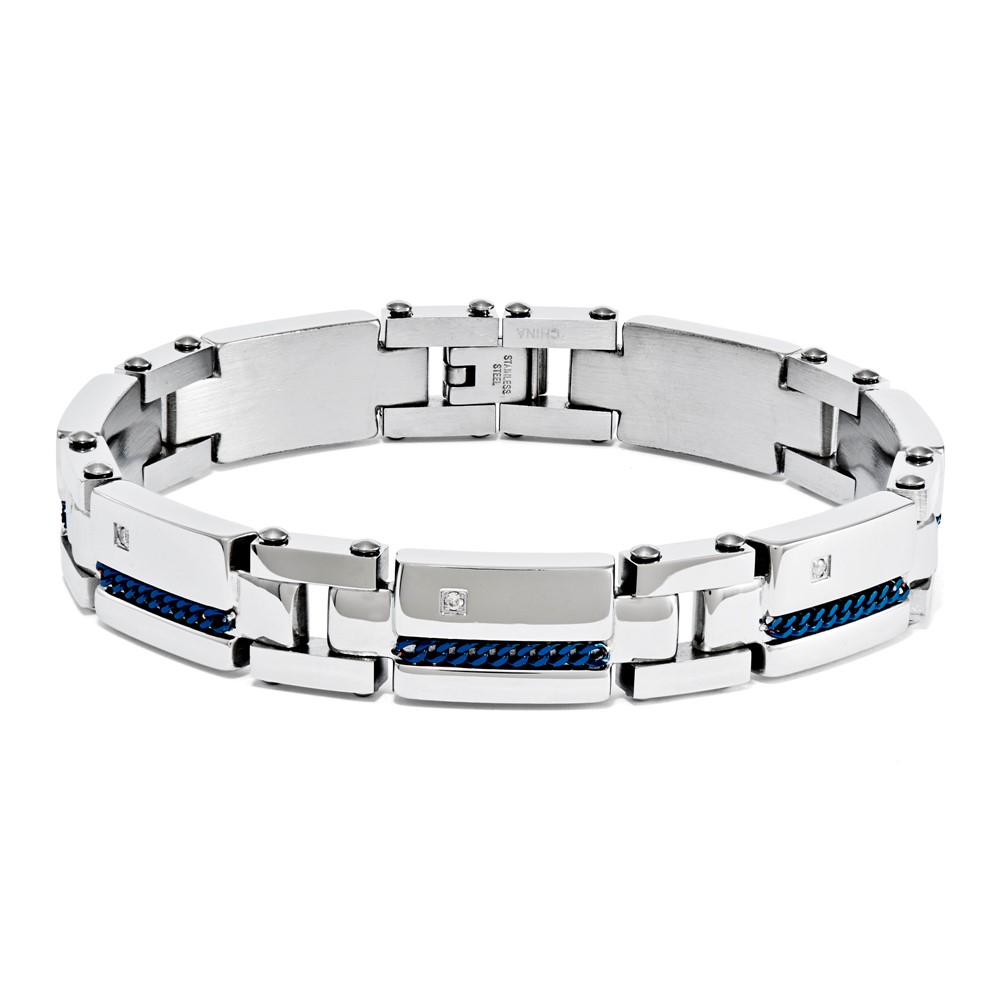 Stainless Steel Blue Cable .10 TCW Dia 9in Bracelet
