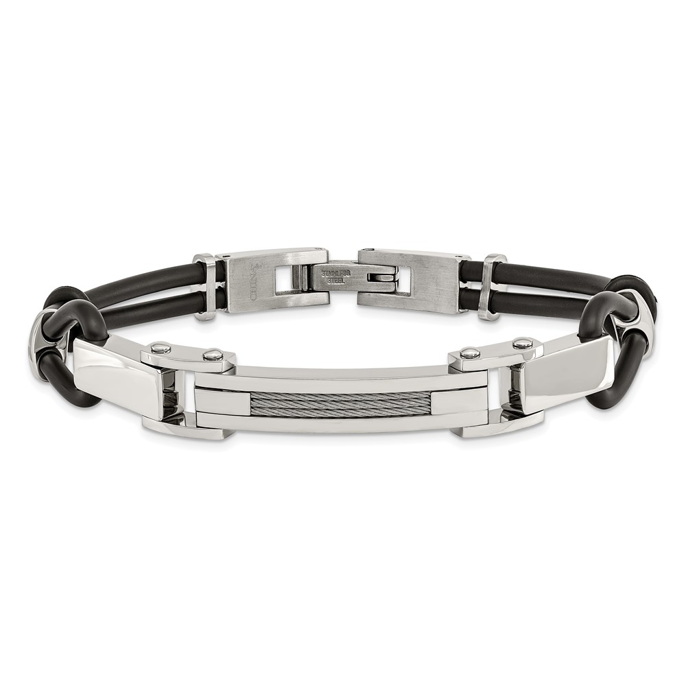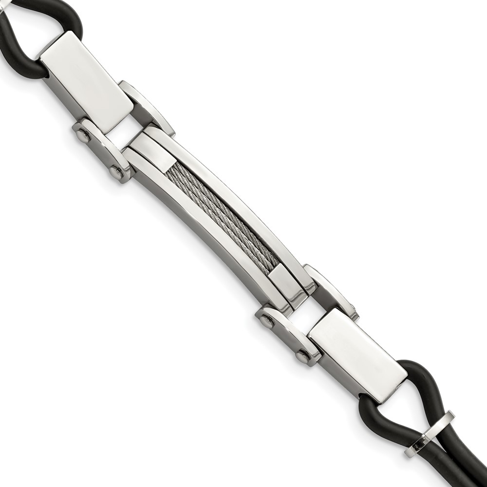 Stainless Steel 9in Polished with Wire Inlay and PU Cord Bracelet
