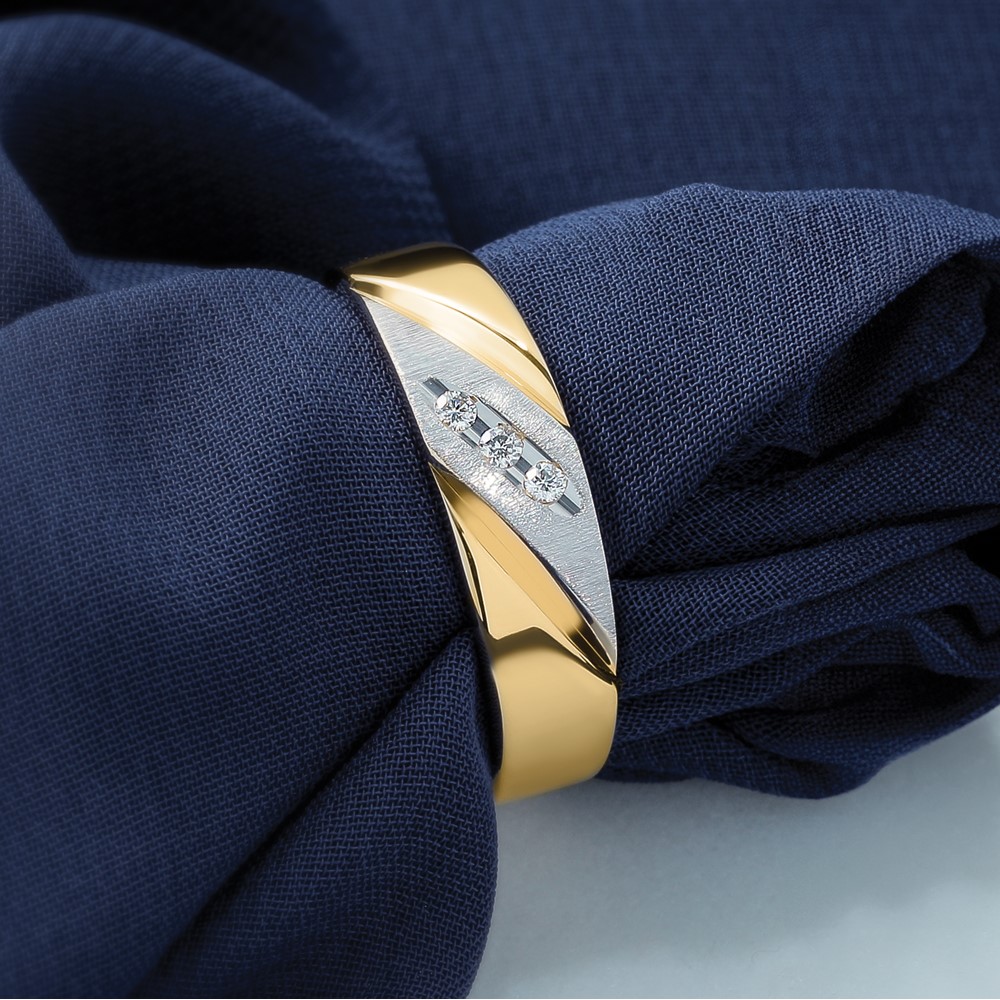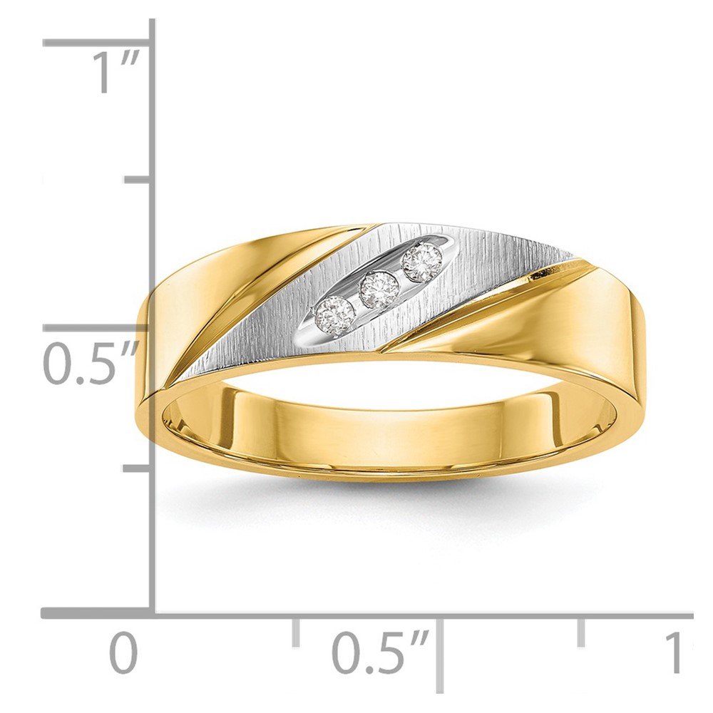 14k and Rhodium AA Quality 1/20 carat Diamond Trio Mens Complete Wedding Band