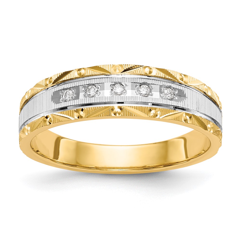 14k and Rhodium AA Quality 1/20 carat Diamond Trio Mens Complete Wedding Band