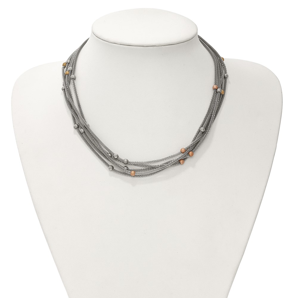 Stainless Steel Polished Rose and Yellow IP-plated Mesh 20.5in Necklace