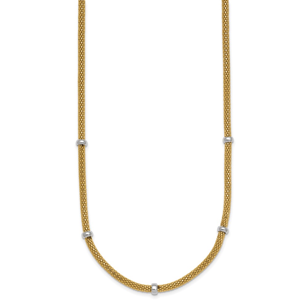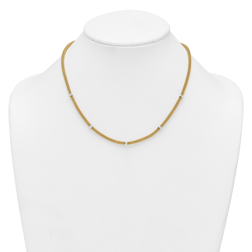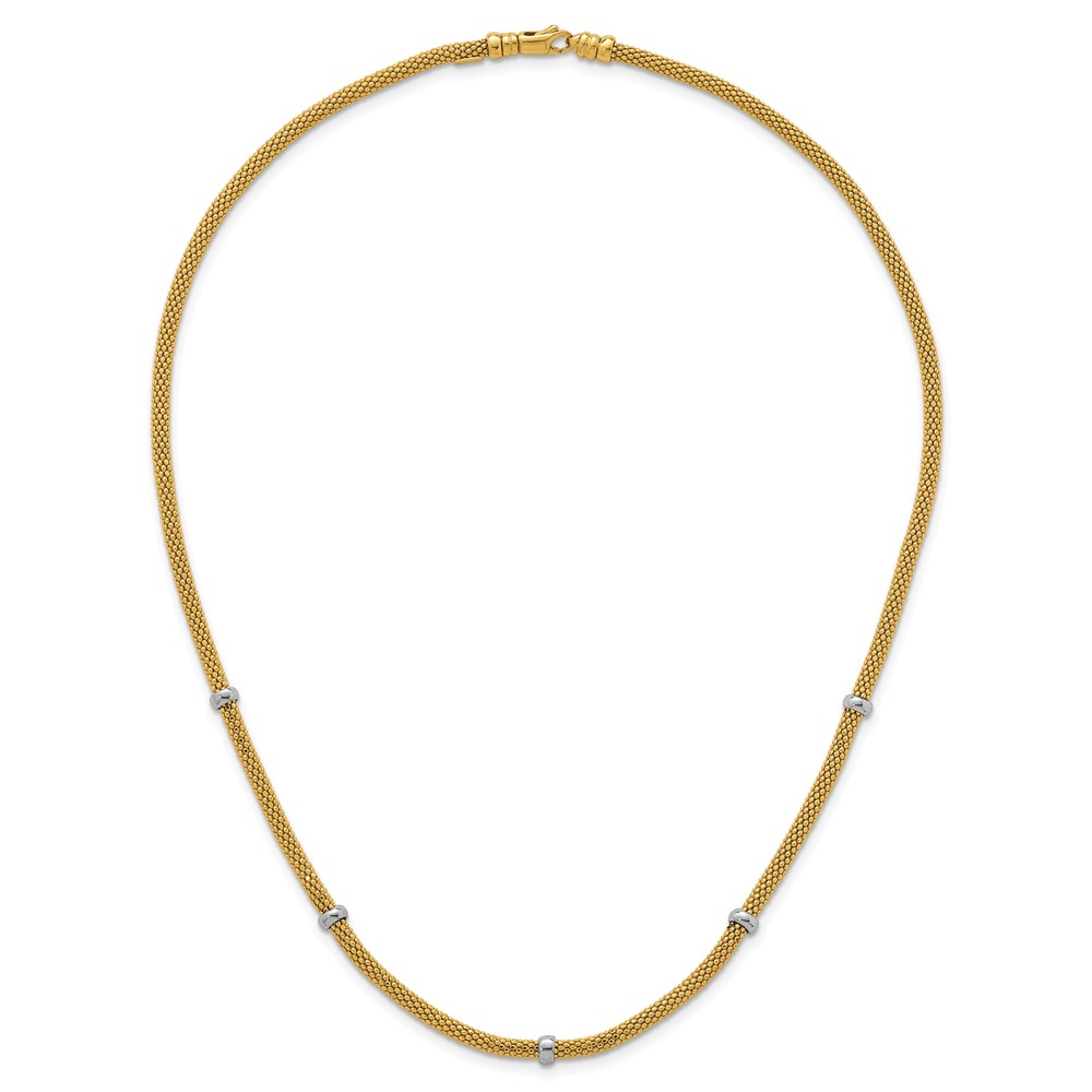 14k Two-tone Polished 7.5mm Fancy Mesh With Bead 18 inch Necklace