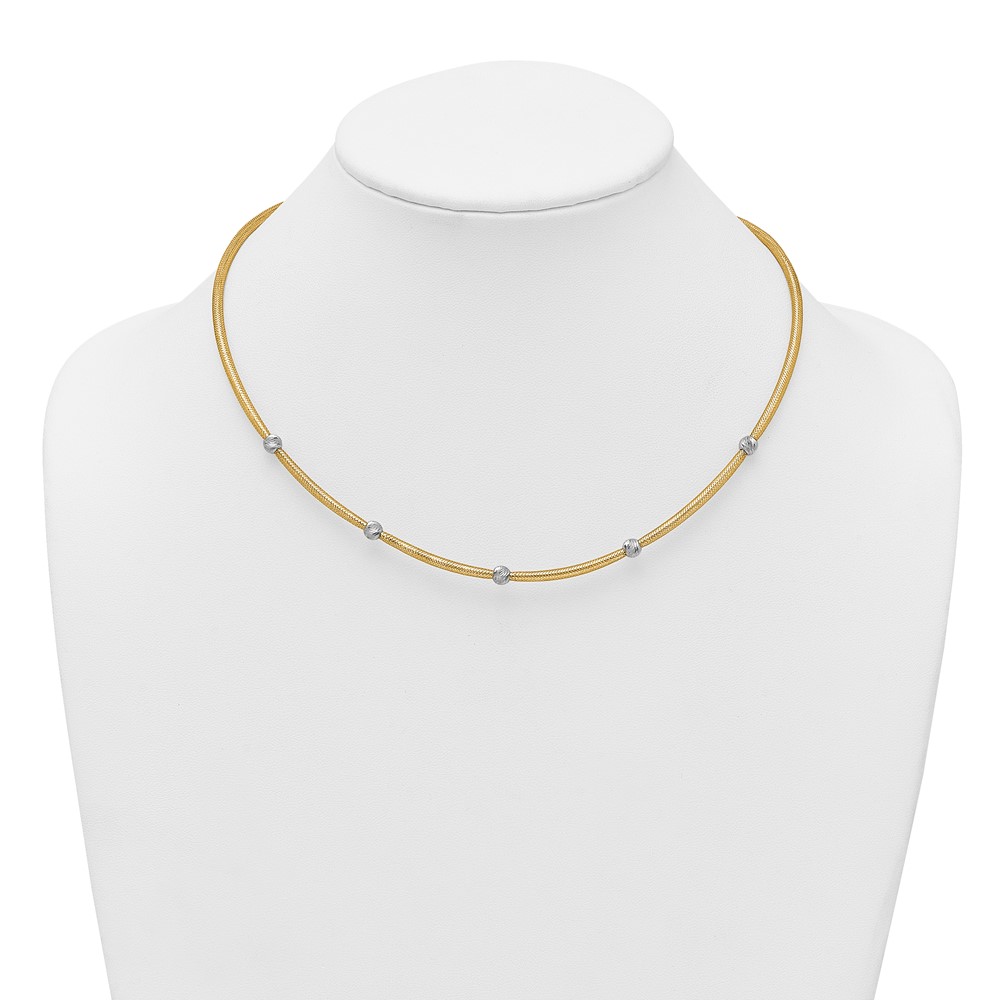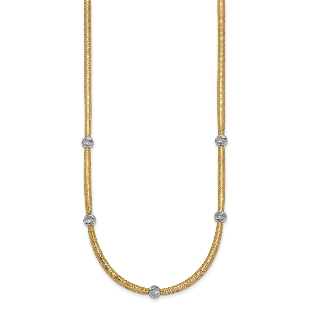 14k Polished with Rhodium 5-Station Diamond-cut Beads 4mm Flexible Mesh 18 inch Necklace