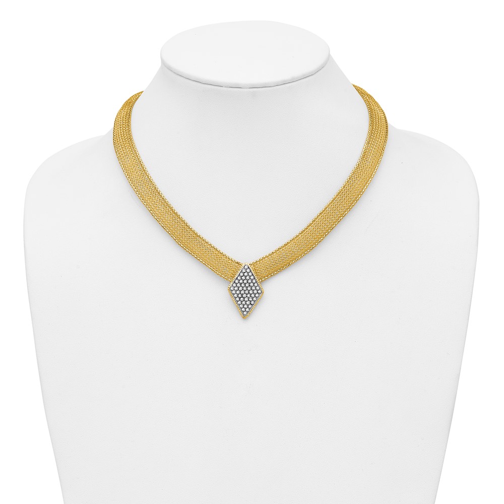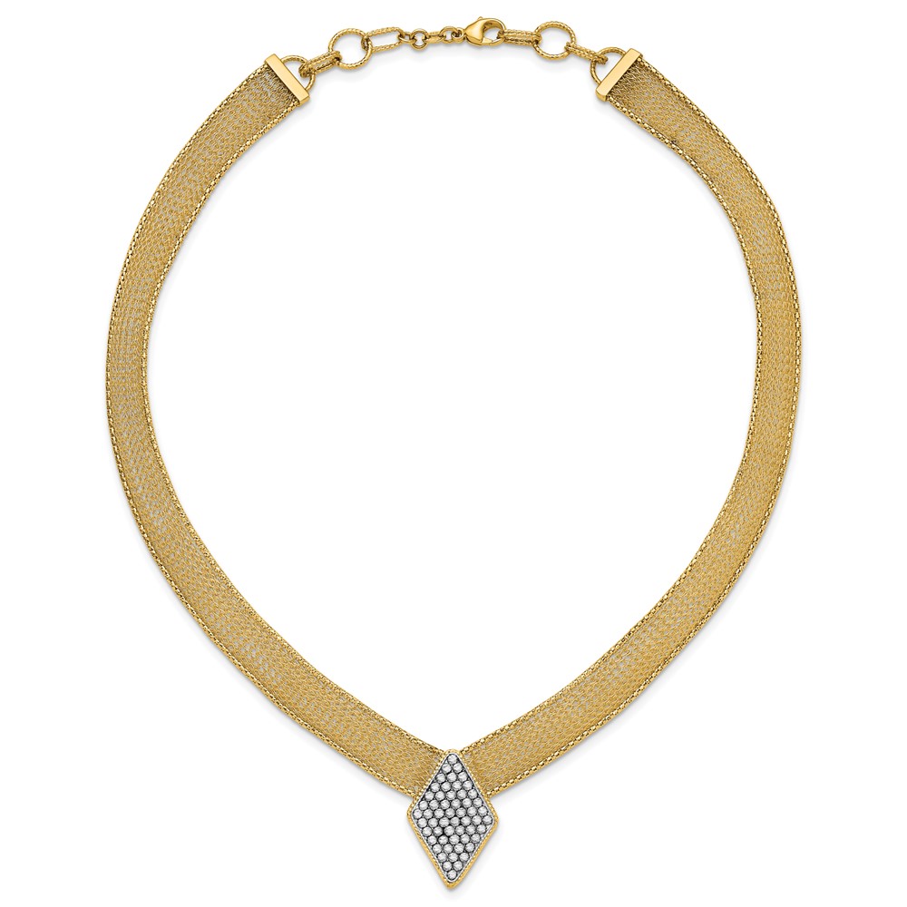 Herco 14K Two-tone Polished Diamond Shaped Accent with Diamond-cut Center Woven Necklace