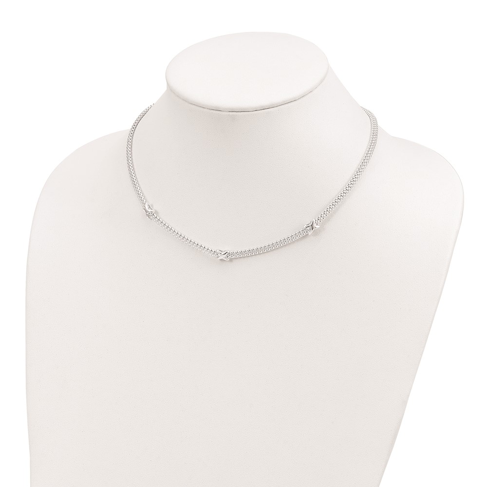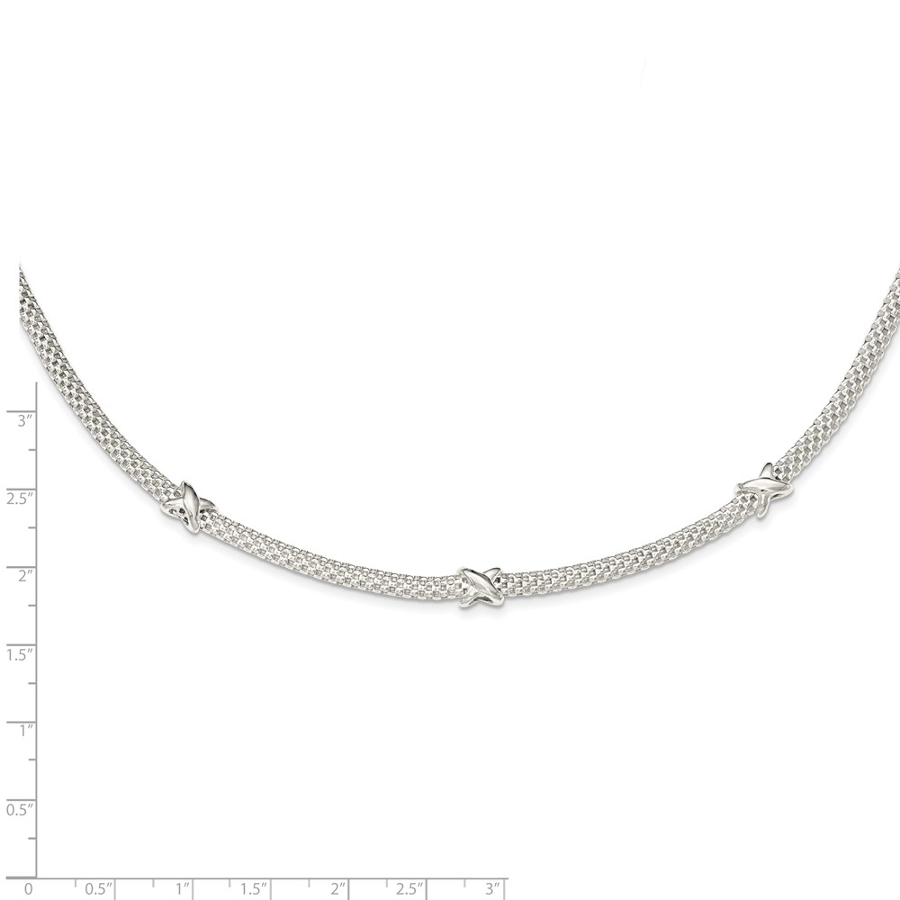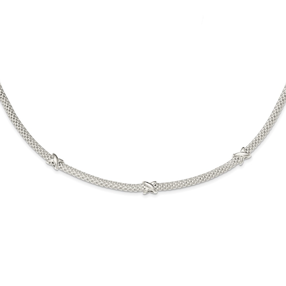 Sterling Silver Mesh with X's w/1in extension Necklace