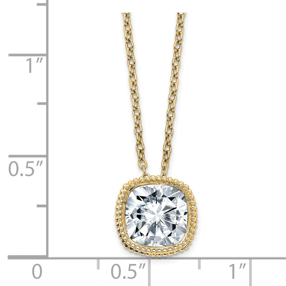 14ky Cushion Beaded Bezel 18in Necklace G H I True Light Moissanite