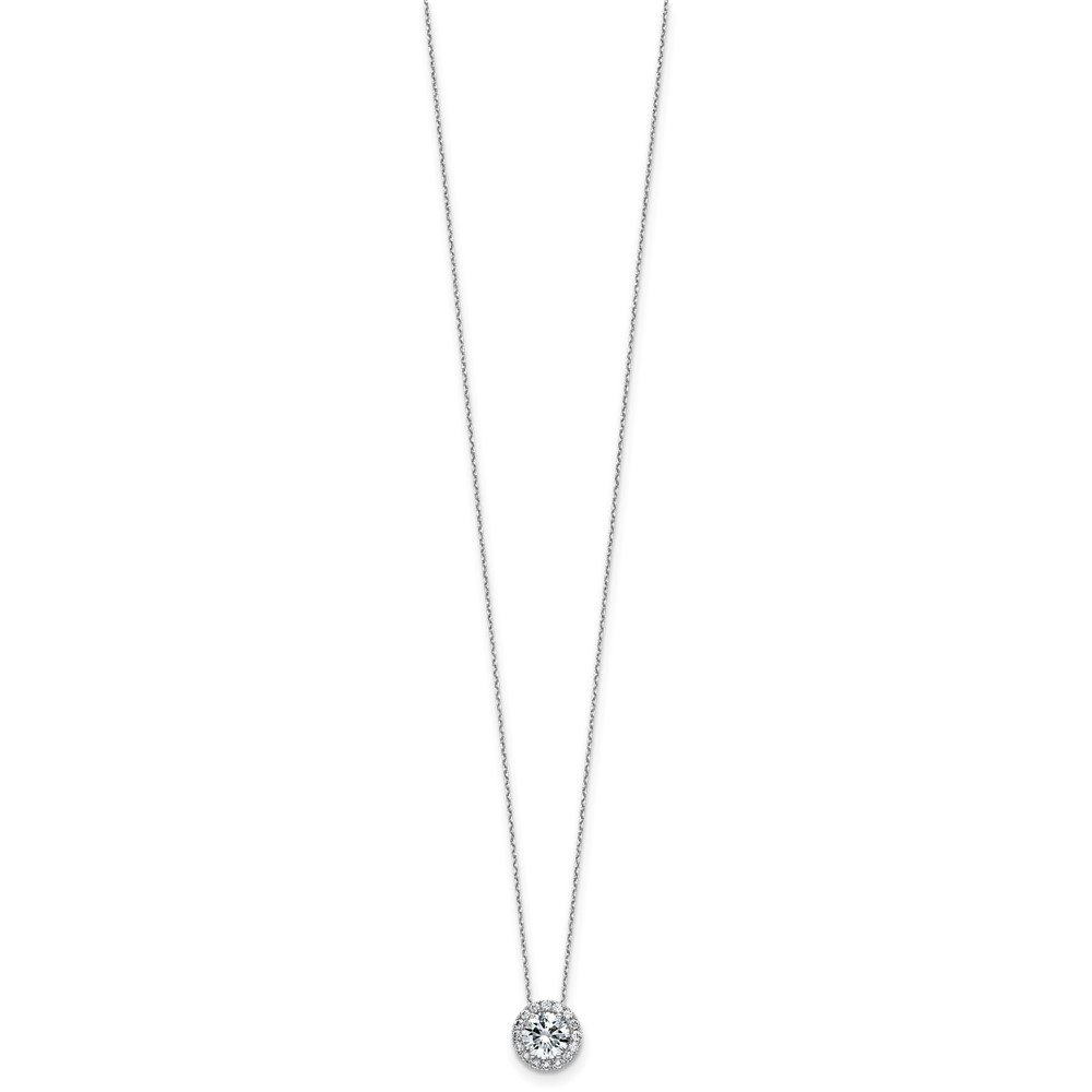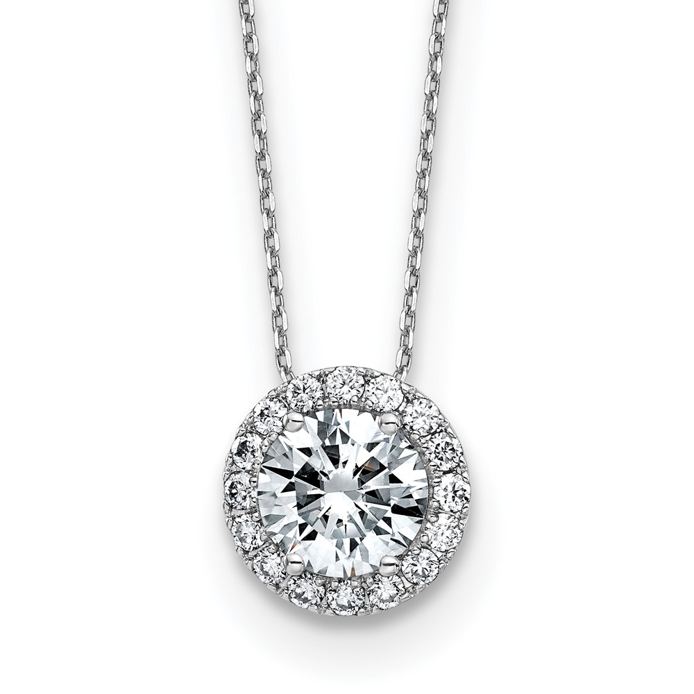 14k White Gold Round Halo Necklace D E F Pure Light Moissanite