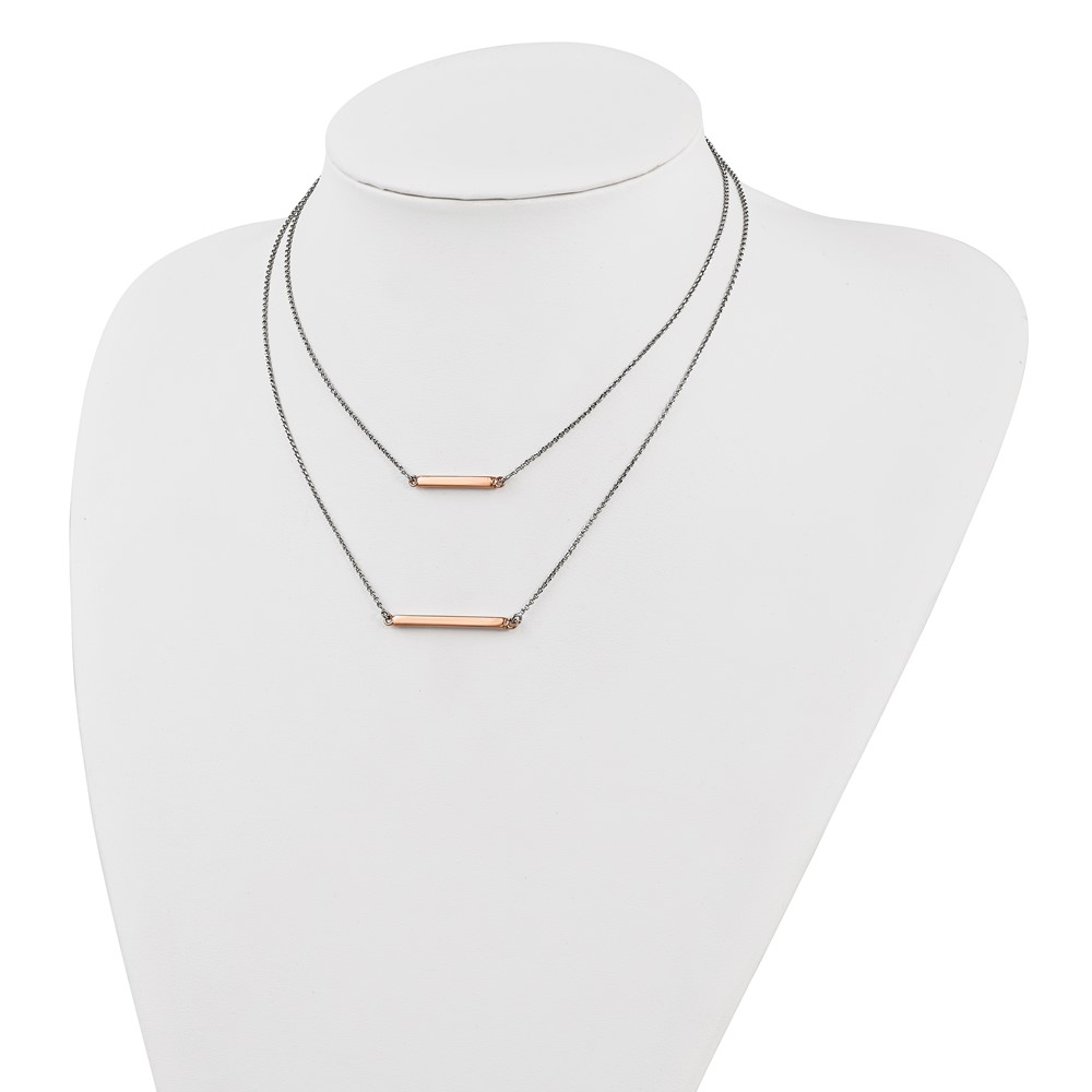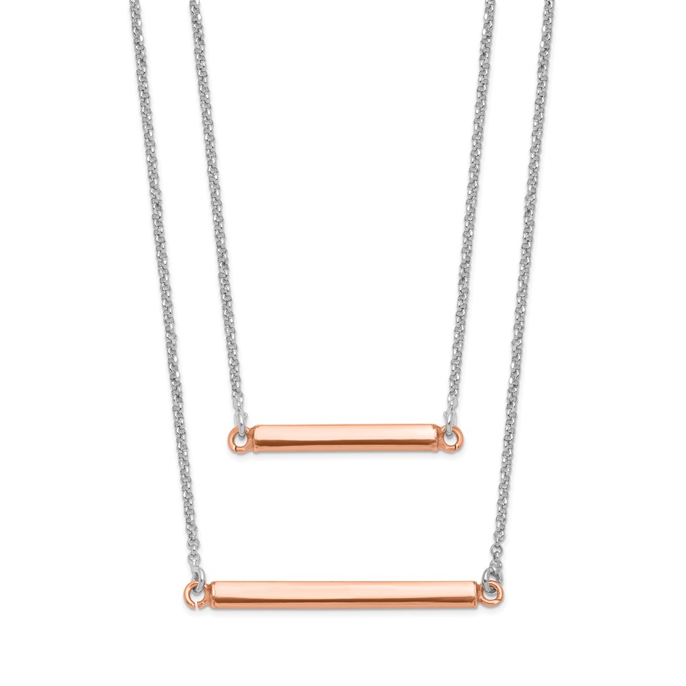 Leslie's Sterling Silver RH-plt Fancy Rose-tone Bar w/2in ext. Necklace