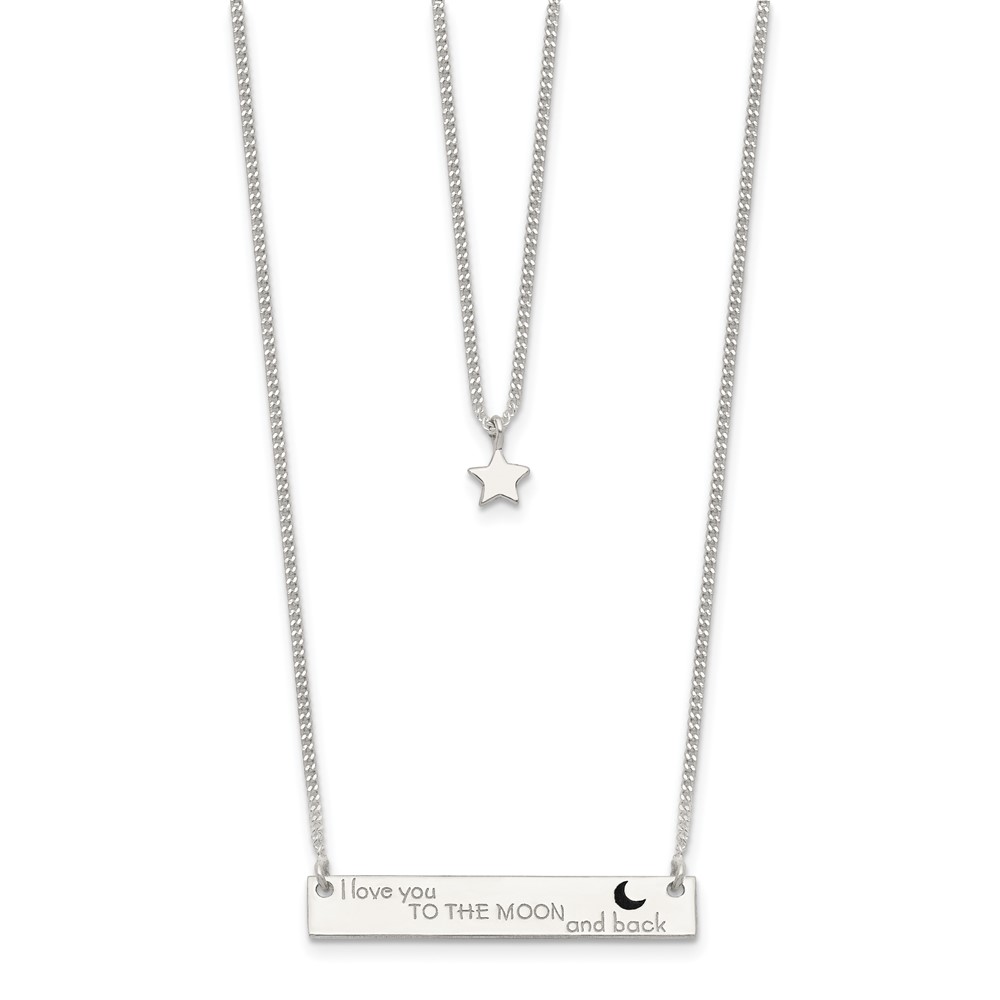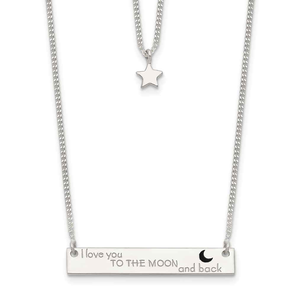 Sterling Silver Enameled Moon and Back 2-Strand Bar Necklace