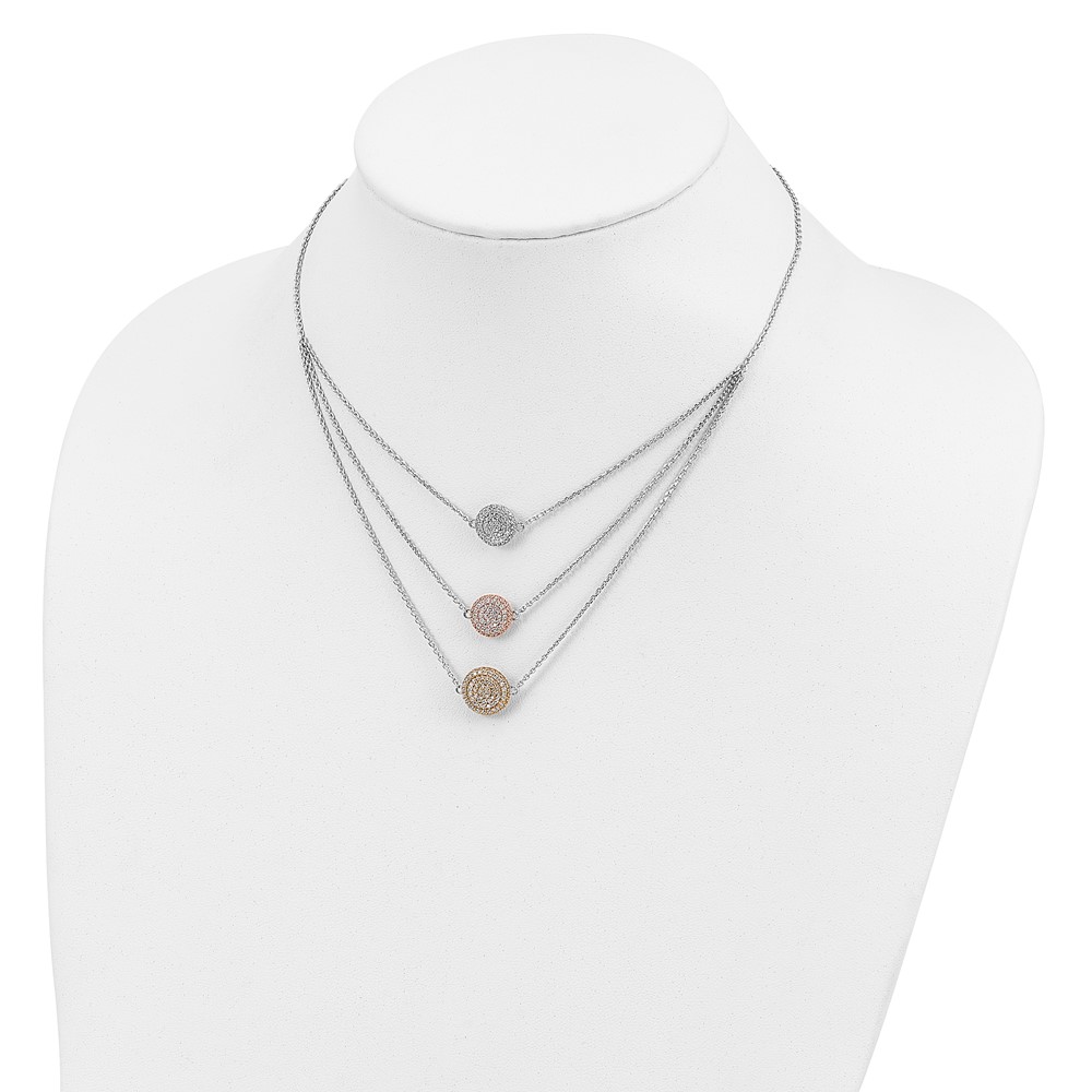 Sterling Silver Gold-plated and Rose-plated CZ w/2in ext Necklace