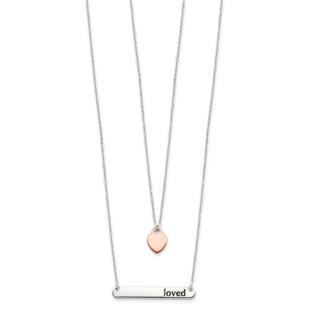 Sterling Silver Rose-tone Heart Enameled LOVED 16in Bar Necklace