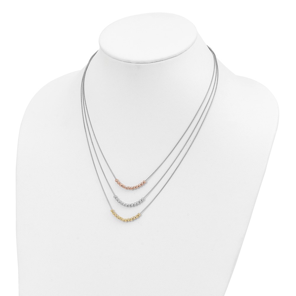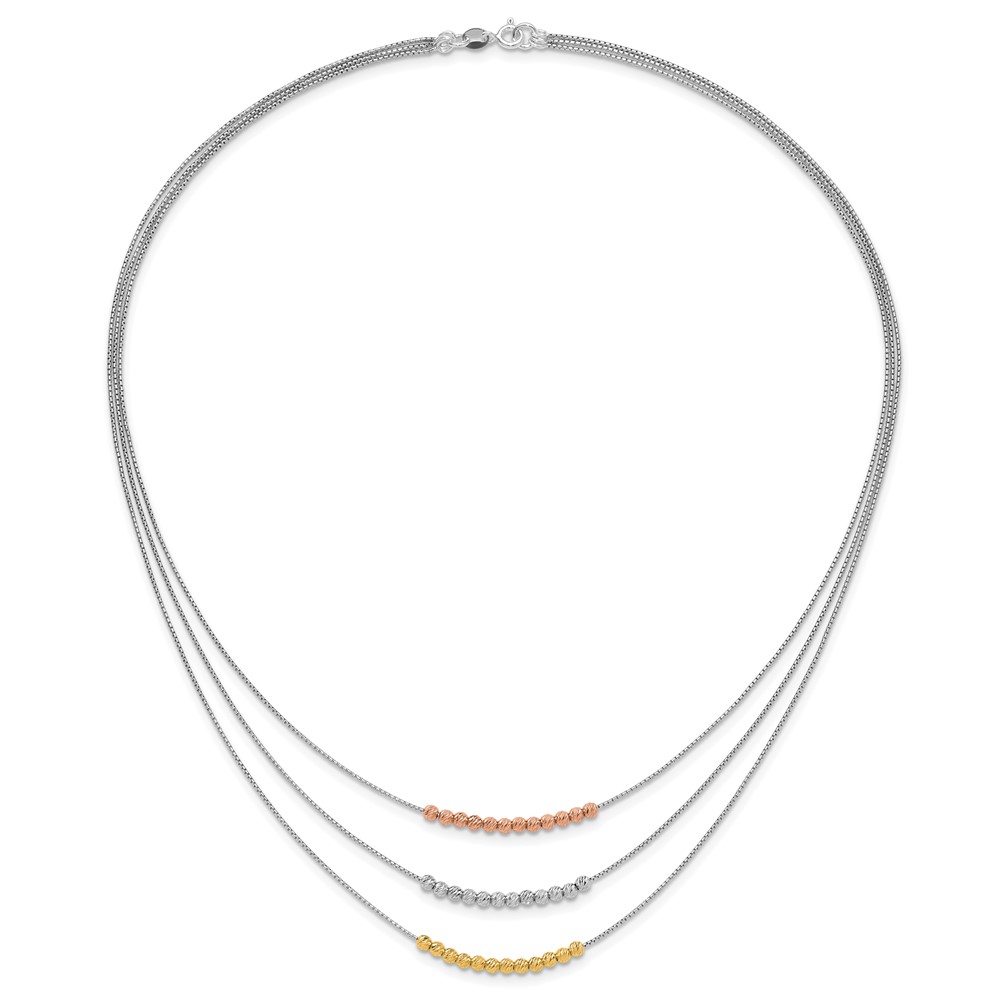 Sterling Silver Rhod-plated Diamond-cut Gold/Rose-tone 3 Strand Necklace