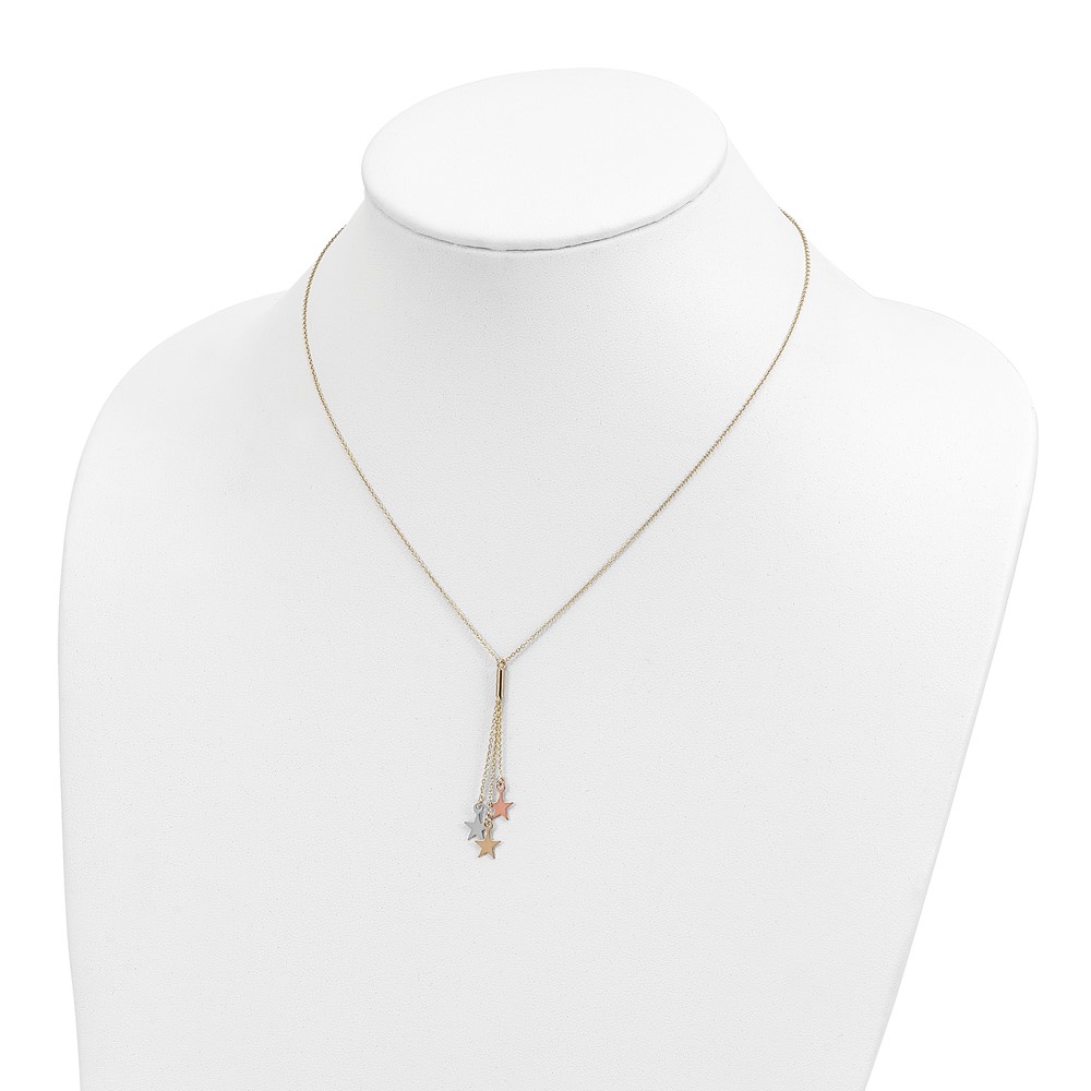 Sterling Silver Rhod-pltd CZ Star and Moon 2in ext 2-strand Necklace