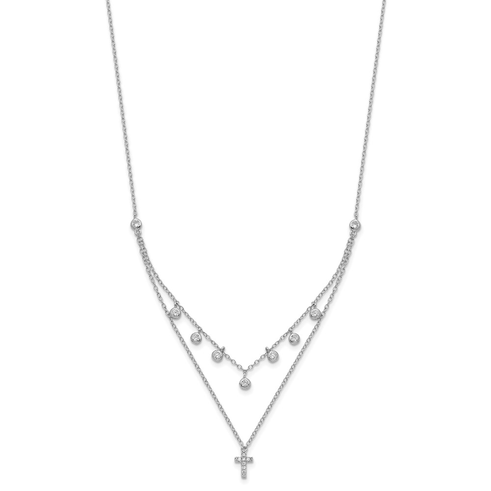 Sterling Silver Rhodium-plated CZ Cross w/ 2in ext. Necklace