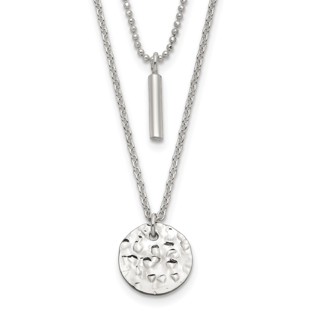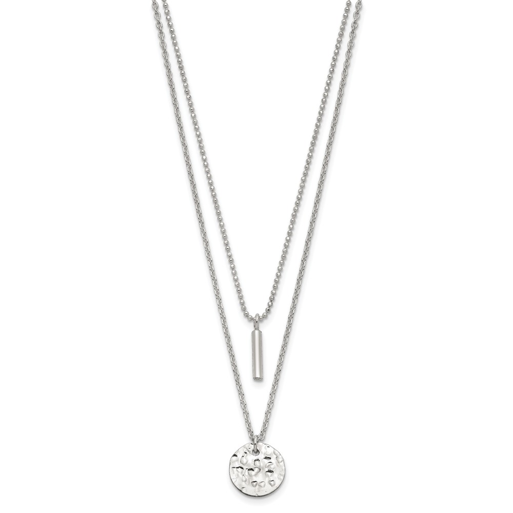 Sterling Silver 2-Strand Hammered Circle and Bar Necklace