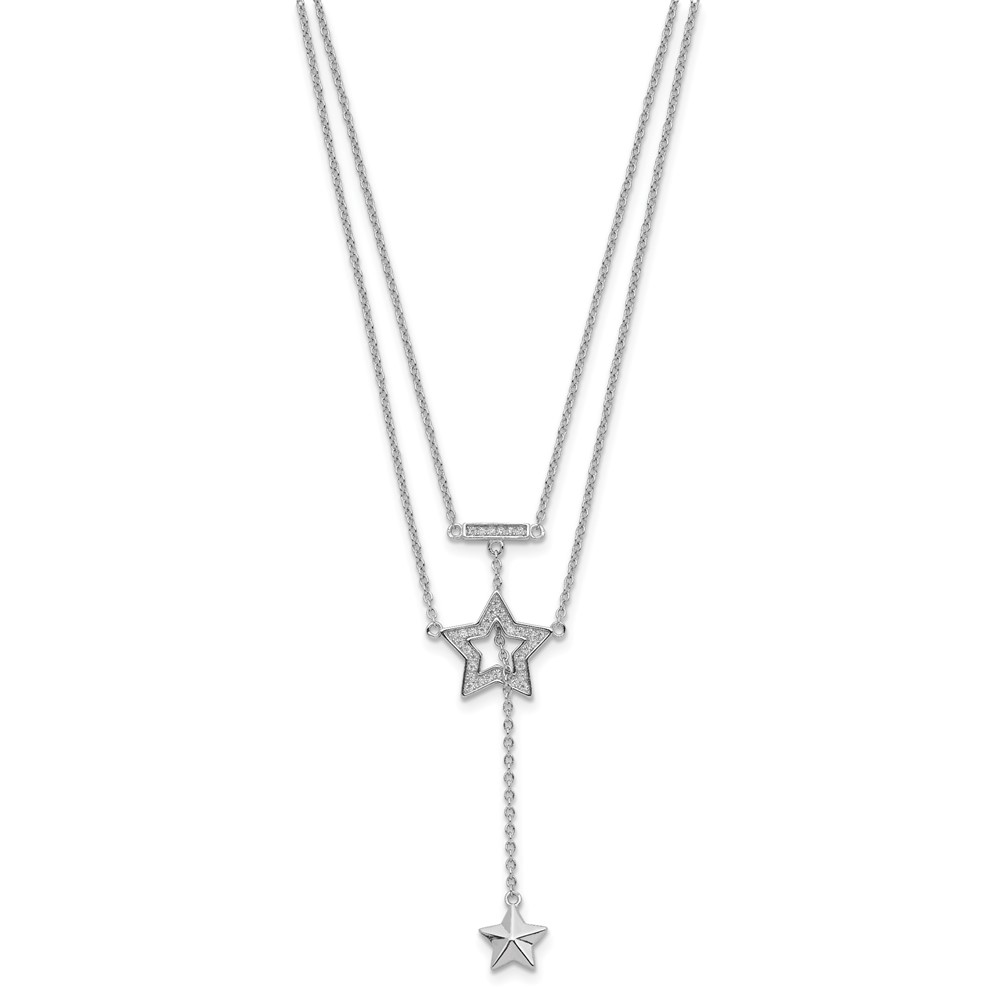 Sterling Silver Rhodium-plated 2-Strand CZ Star w/1in. Ext. Necklace