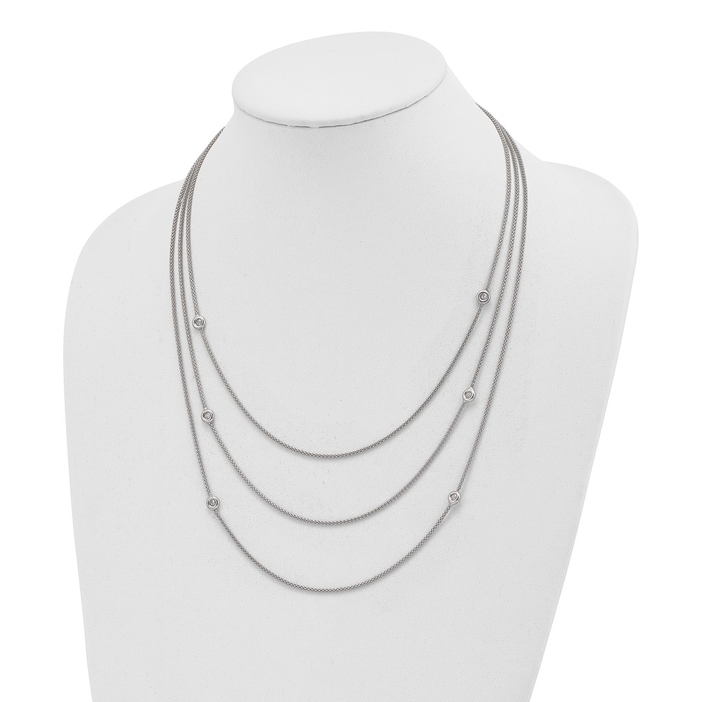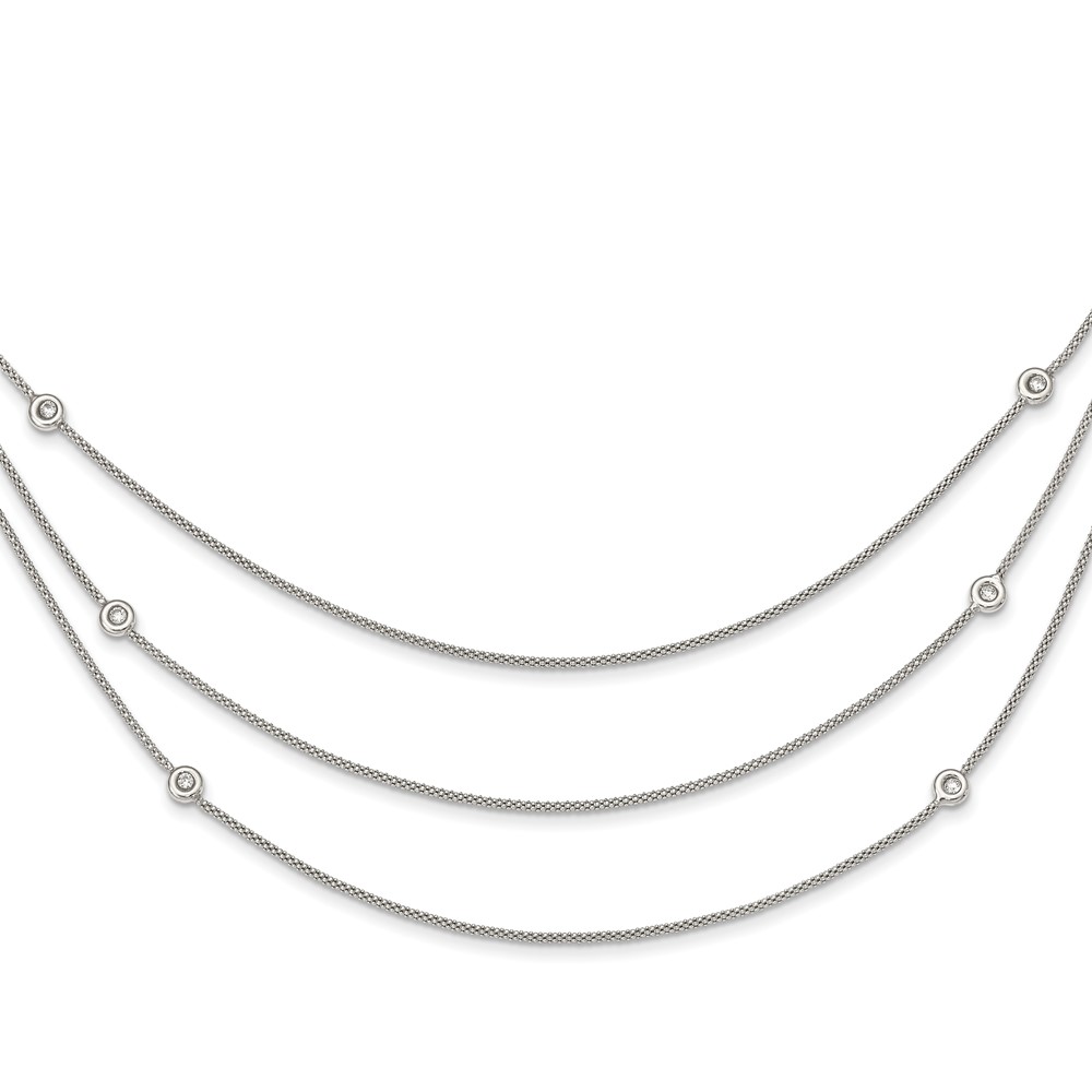 Sterling Silver Polished Multi Strand CZ w/2 in ext Necklace