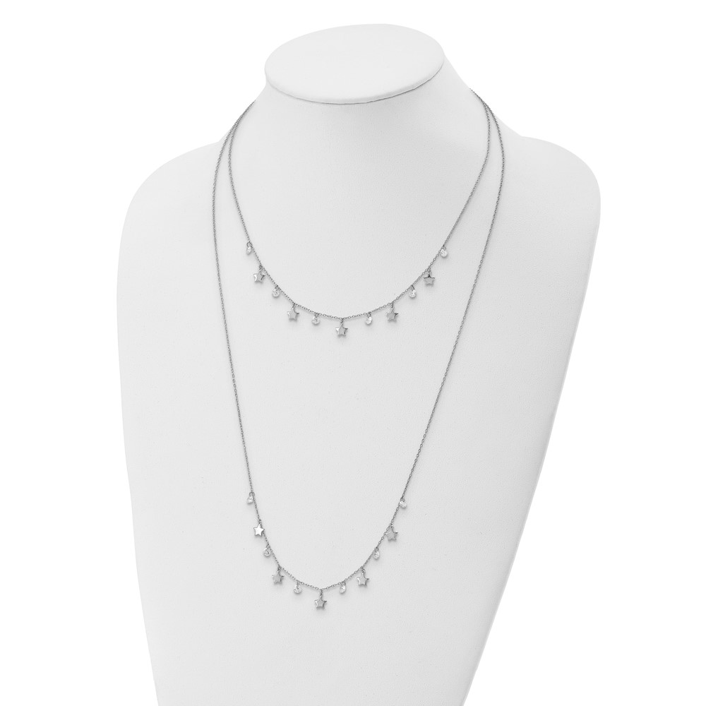 Sterling Silver Rh-Plated Stars and CZ Layered w/ 1.25in Ext. Necklace