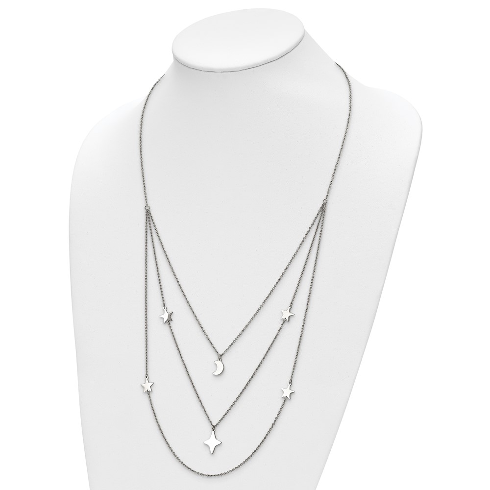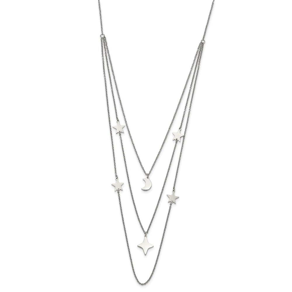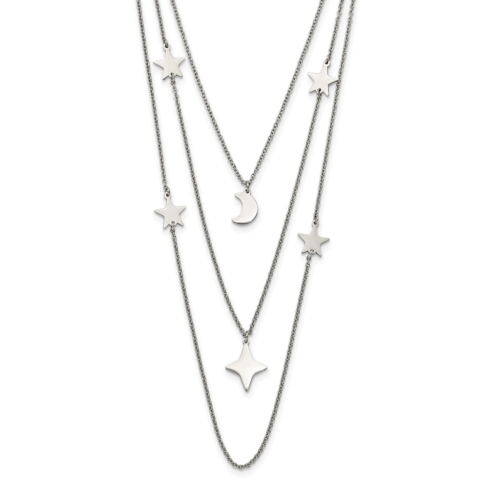 Chisel Stainless Steel Polished Stars and Moon Multi Strand 24.25 inch Cable Chain with 1.75 inch Extension Necklace