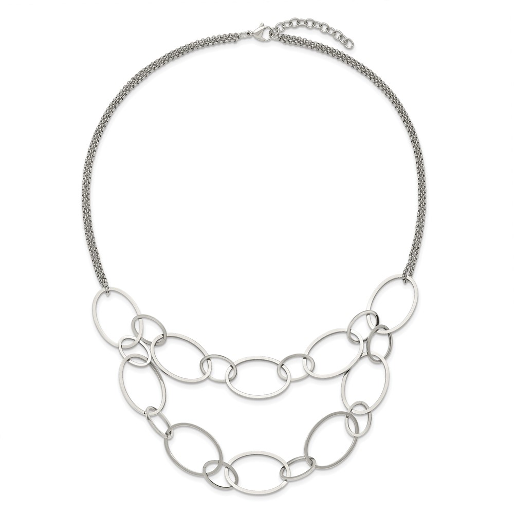 Chisel Stainless Steel Polished Oval Link 2-Strand 19 inch with 1.5 inch Extension Necklace