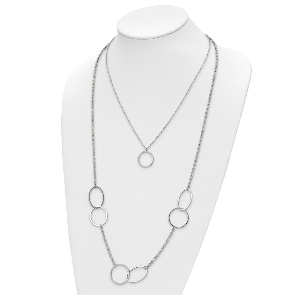 Chisel Stainless Steel Polished with Circles 2-Strand 20 inch Necklace