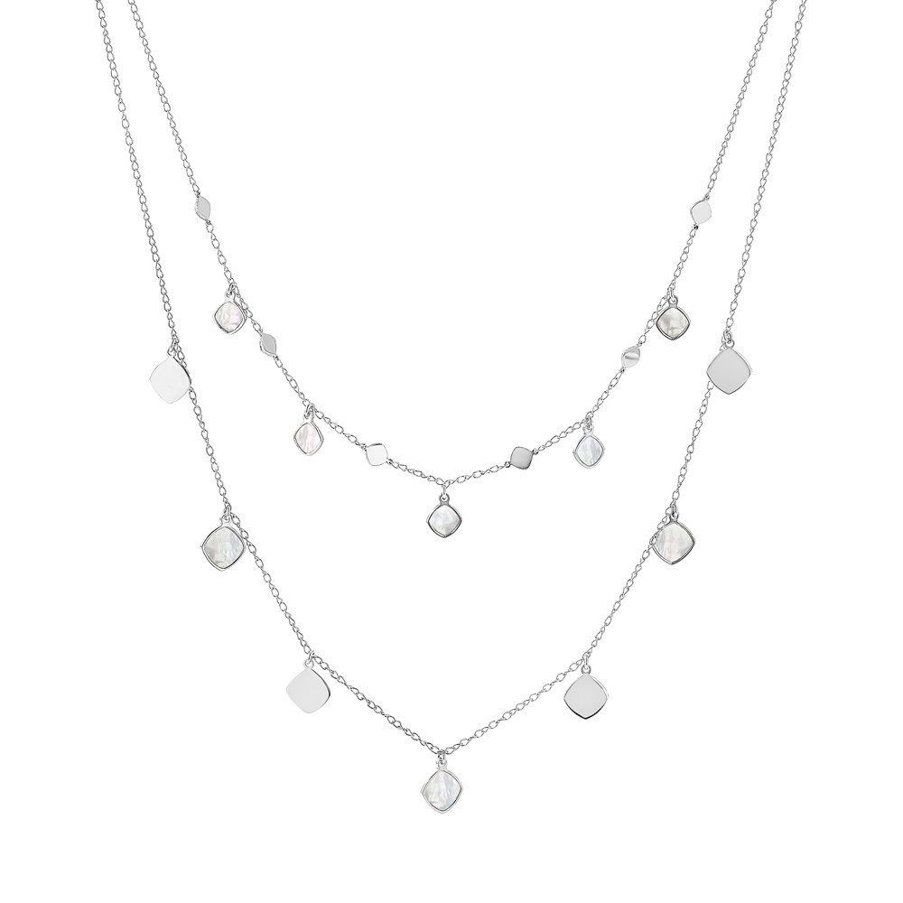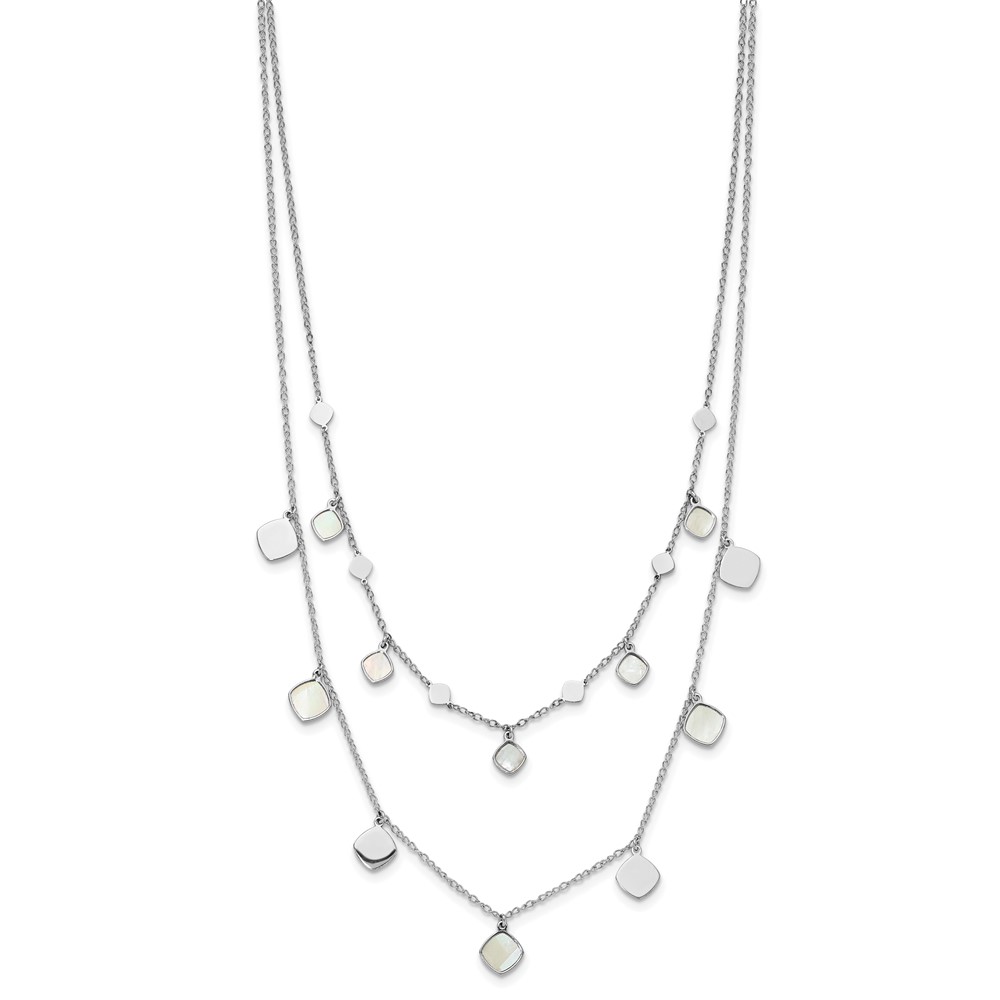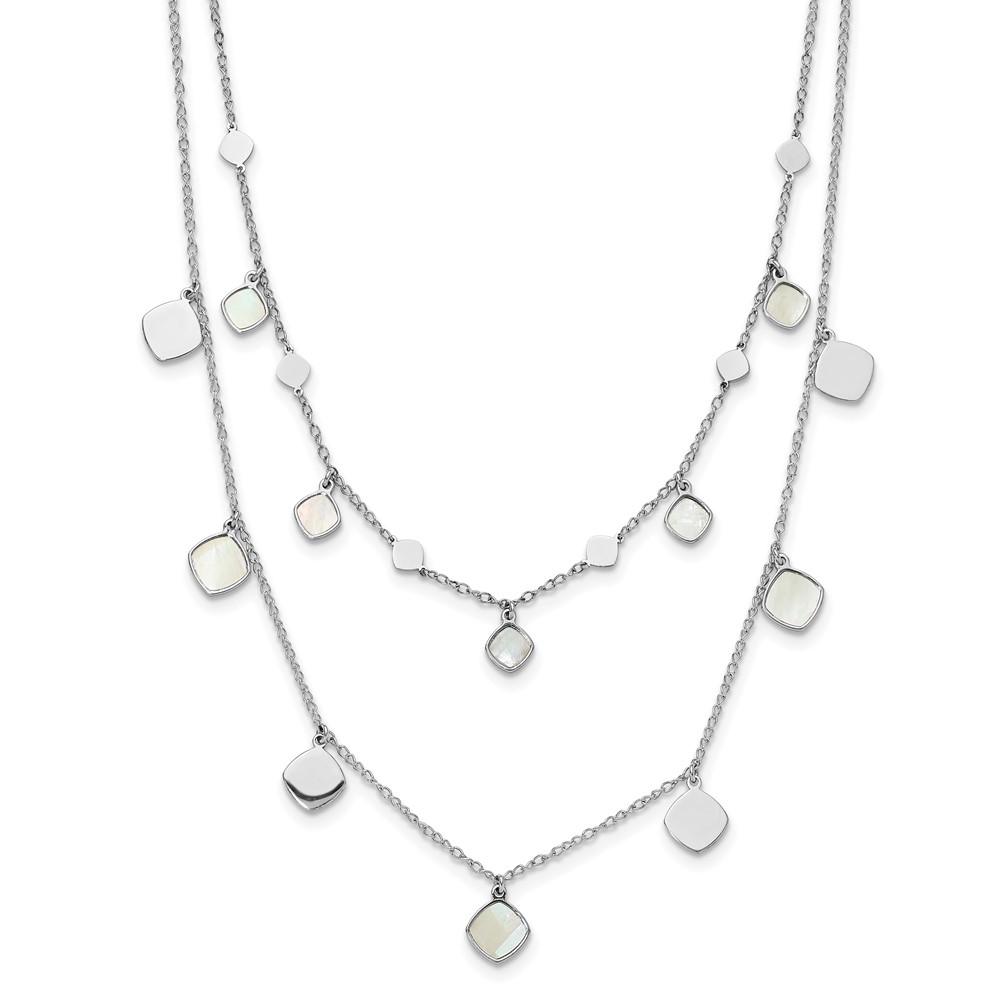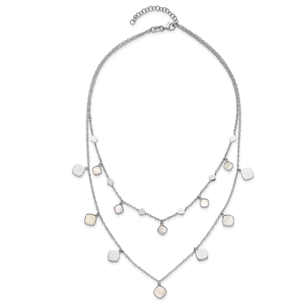 Leslie's Sterling Silver Rh-plated MOP 2-strand w/ 1.5in ext. Choker