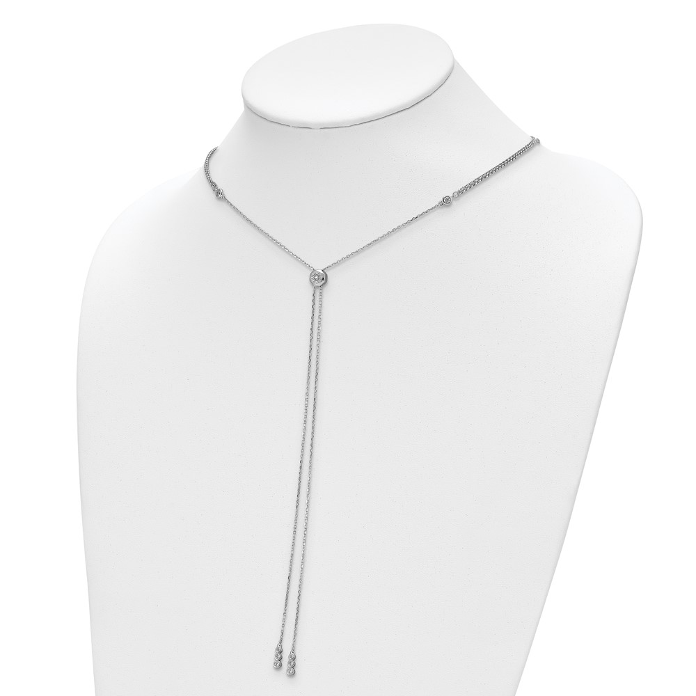 Sterling Shimmer Sterling Silver Rhodium-plated Adjustable up to 29 inches 50 Stone CZ 2 Strand Layer Y-Drop Necklace