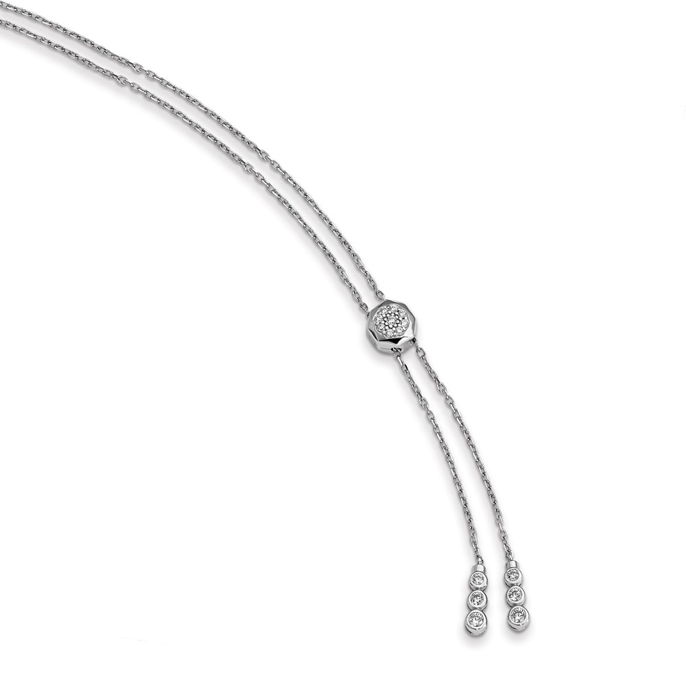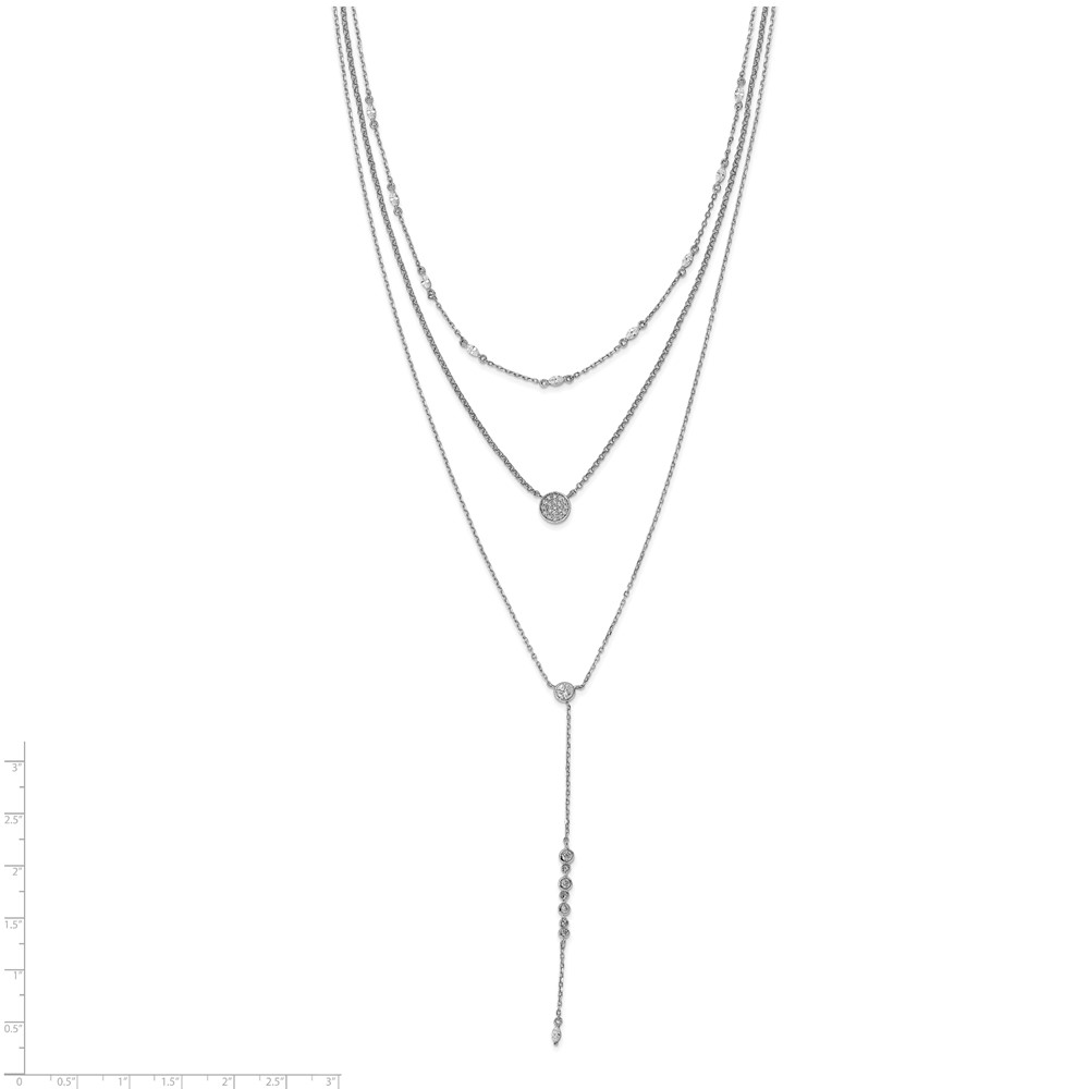 Sterling Shimmer Sterling Silver Rhodium-plated Adjustable up to 28 inches 61 Stone CZ 3 Strand Layer Y-Drop Necklace