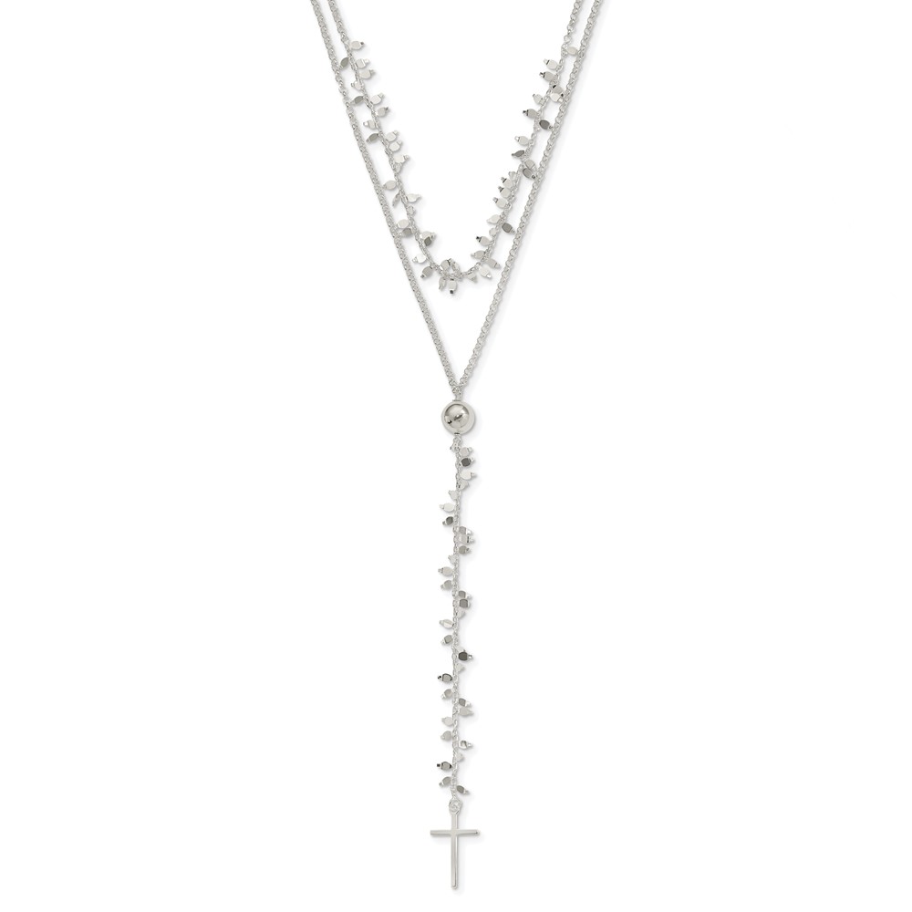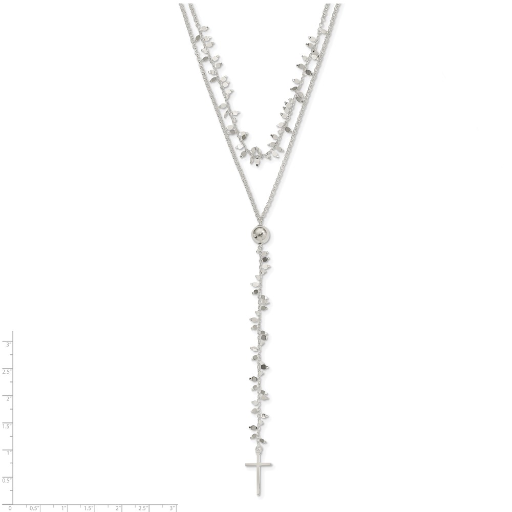 Sterling Silver Polished Cross w/2 in ext 2-Strand Necklace