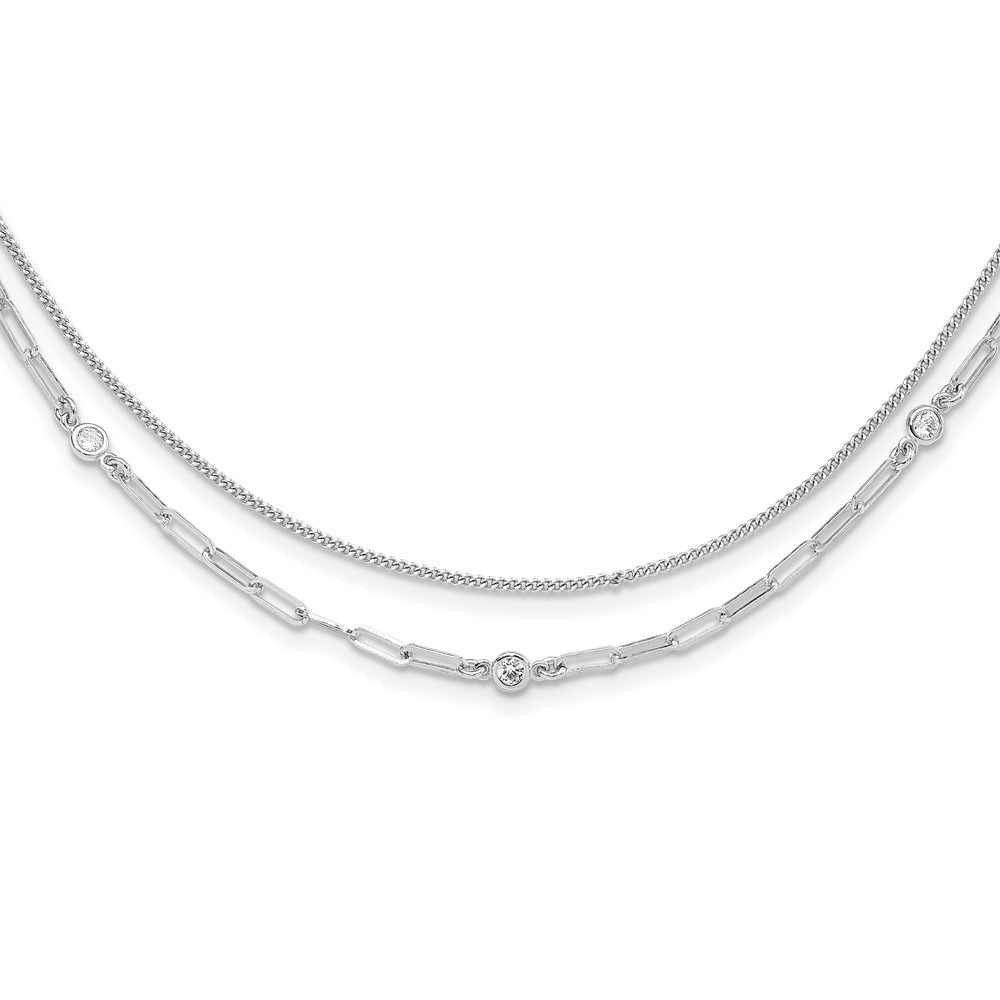 Sterling Silver Rhodium-plated CZ 2 Strand 17in w/2in ext. Necklace
