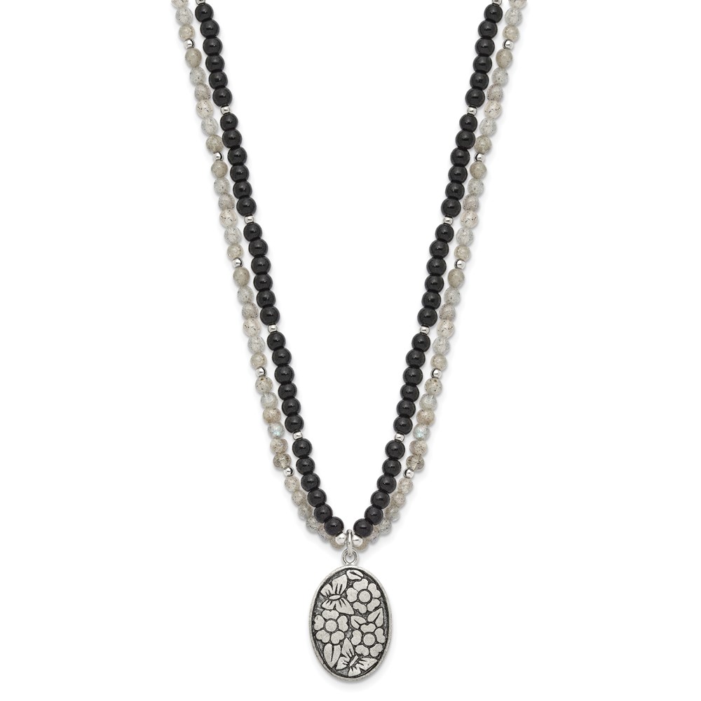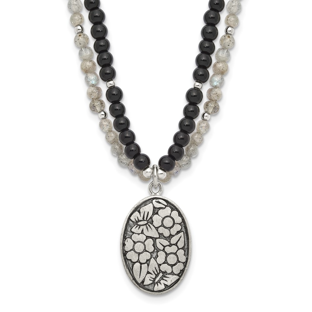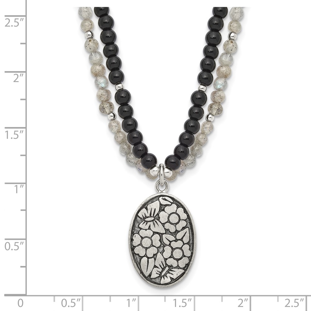 Sterling Silver Antiqued Agate,Labradorite,Quartz Flower 2in ext Necklac