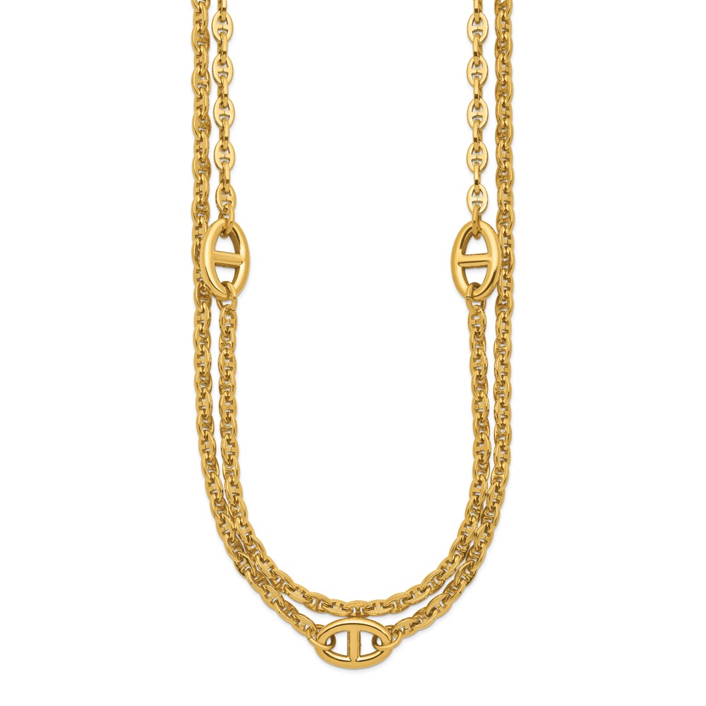 Chisel Stainless Steel Polished Yellow IP-plated Two-Strand Anchor Link 18 inch Plus a 2 inch Extension Necklace