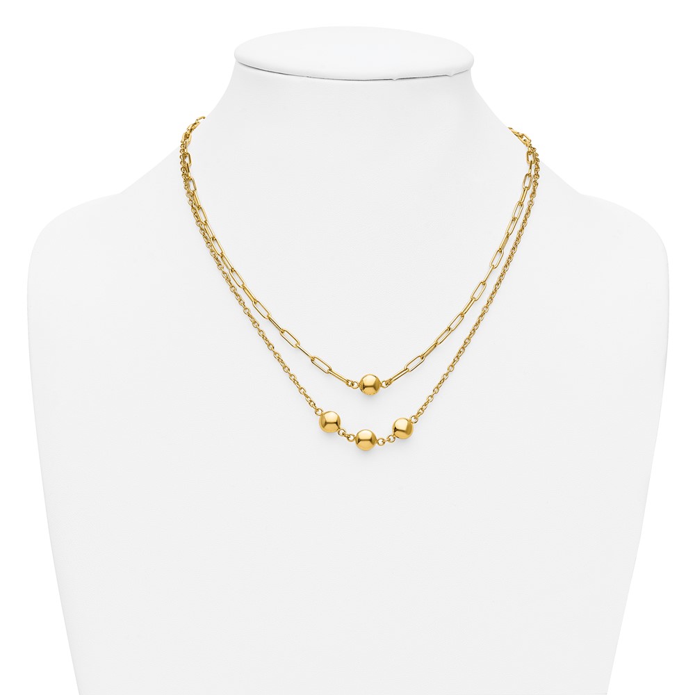 Leslie's 14K Polished Layered Link with Beads Necklace