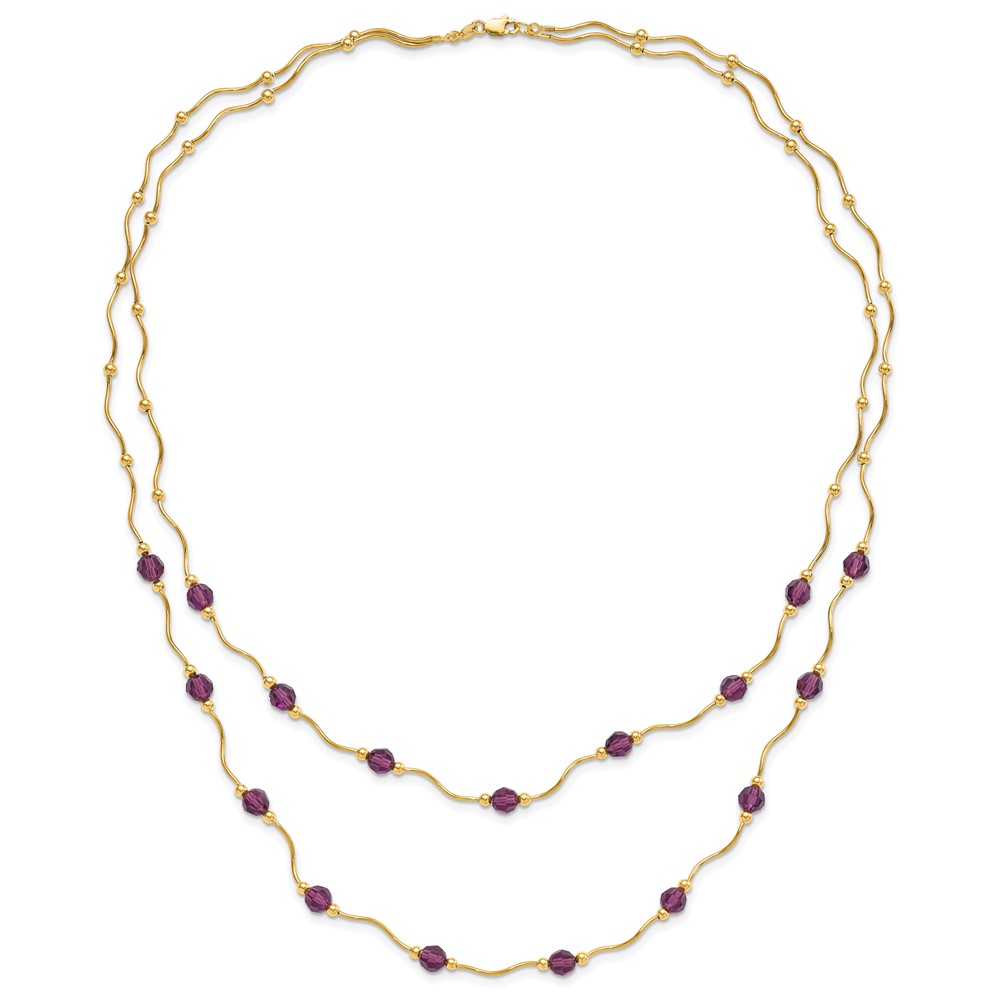 14ky Spiral Bead & Purple Crystal Multistrand Necklace
