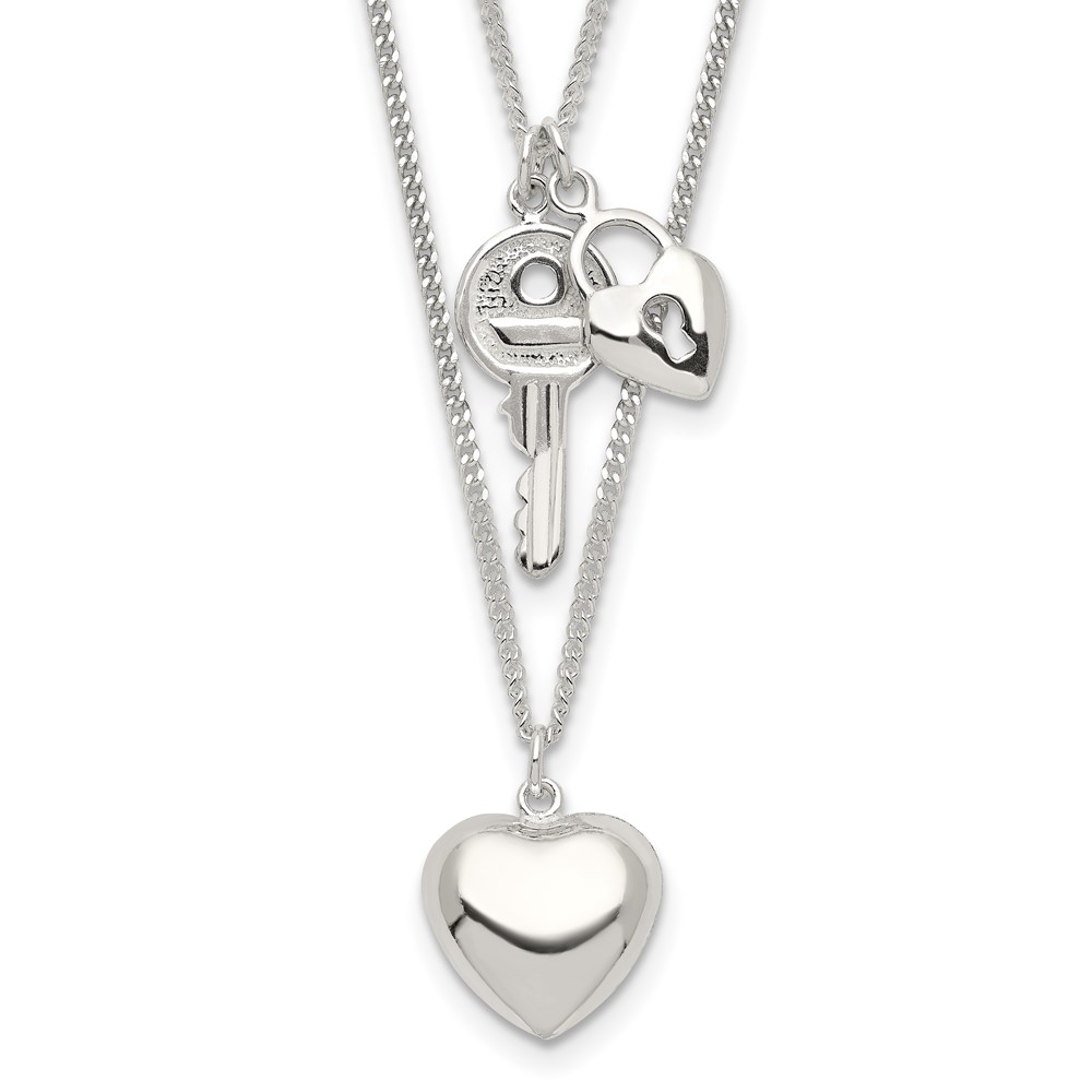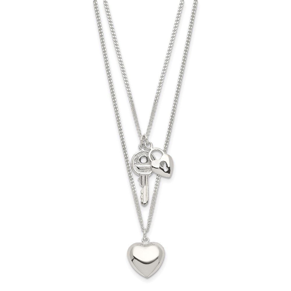 Sterling Silver 2-Strand Heart and Key Necklace