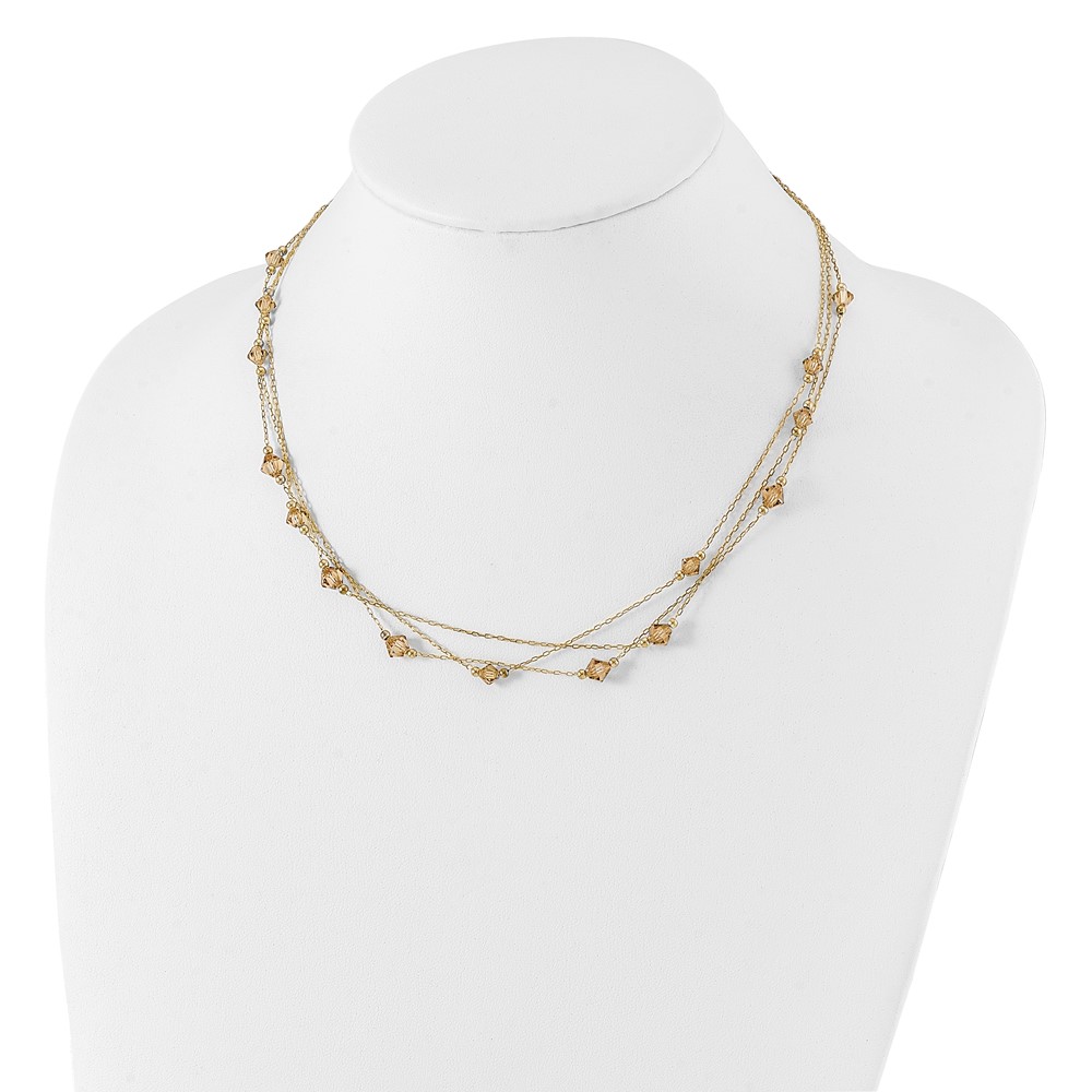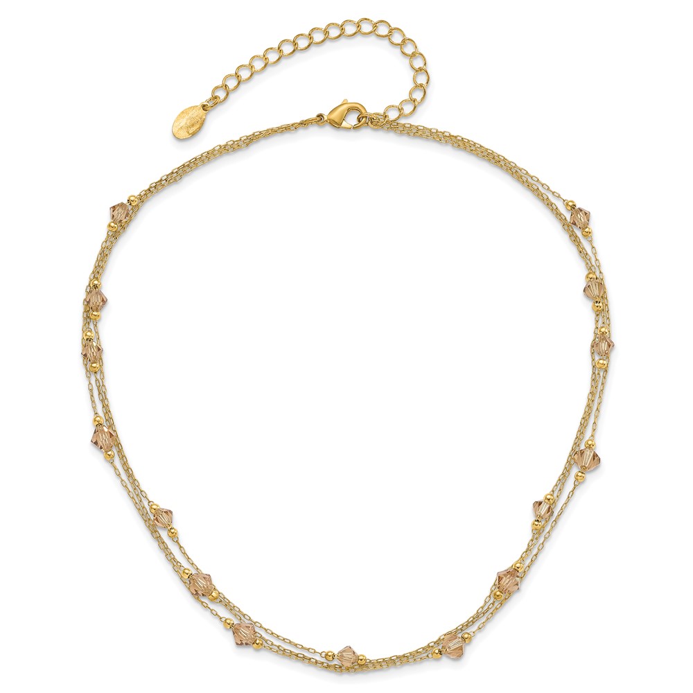 1928 Jewelry Gold-tone Link Light Colorado Faceted Acrylic Beads Three Strand w/ 3 inch extension Necklace