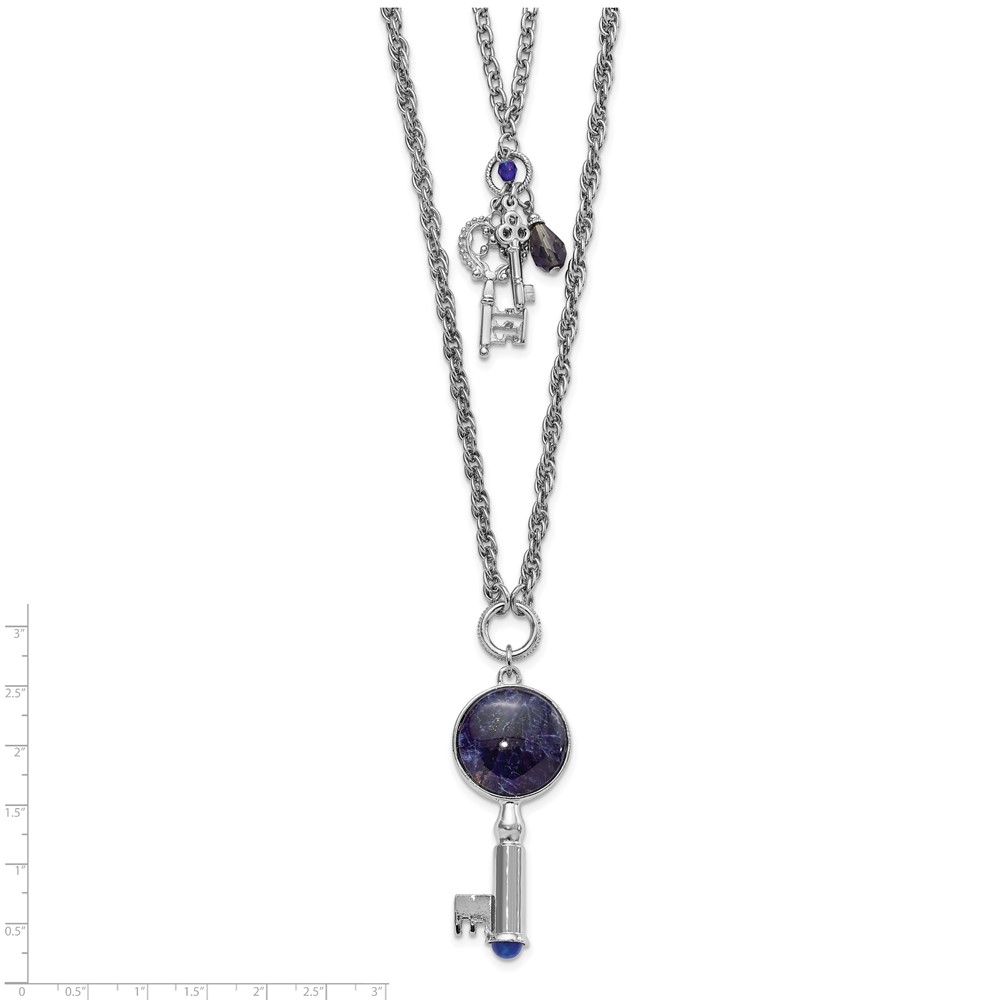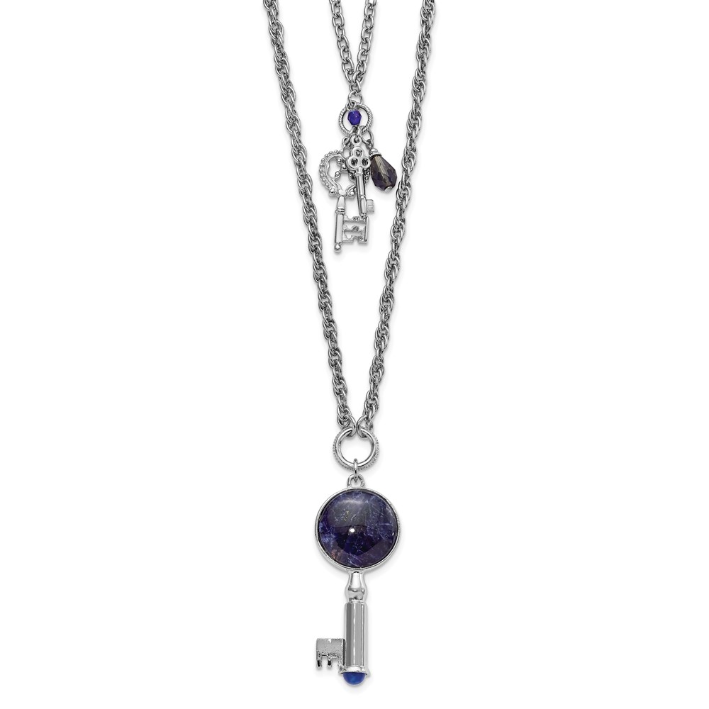 1928 Jewelry Silver-tone Two Strand Three Key Pendants Crystal and Sodalite Accents Necklace