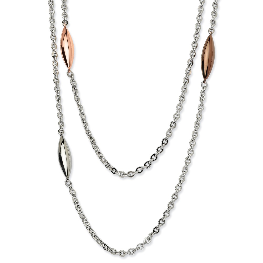 Stainless Steel Rose, Brown IP plated & Steel Ovals 28in Necklace