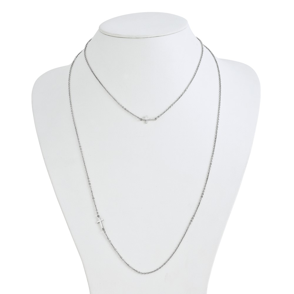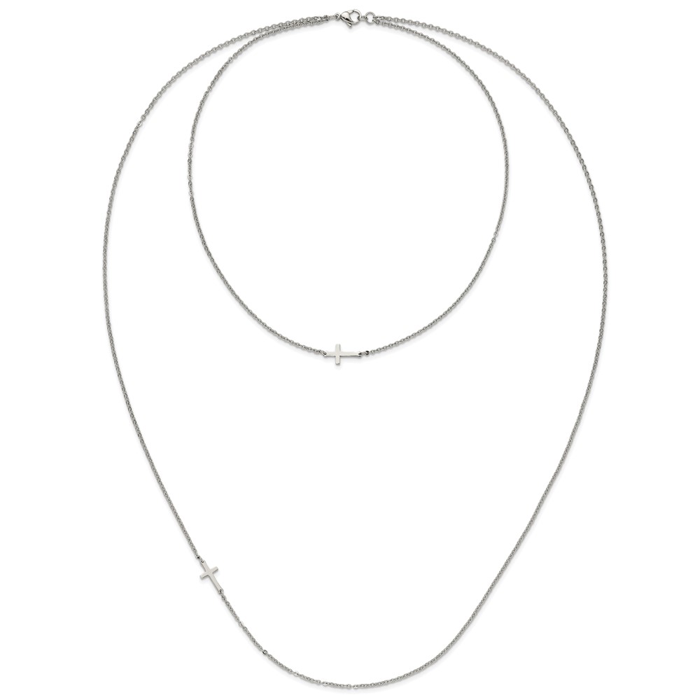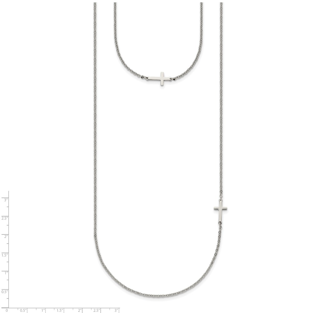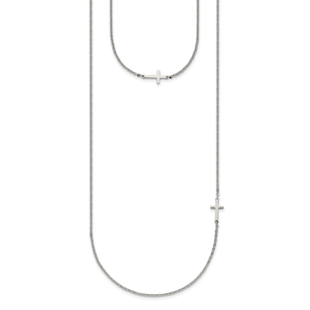 Chisel Stainless Steel Polished Layered Sideways Cross on an 18 inch Cable Chain Necklace